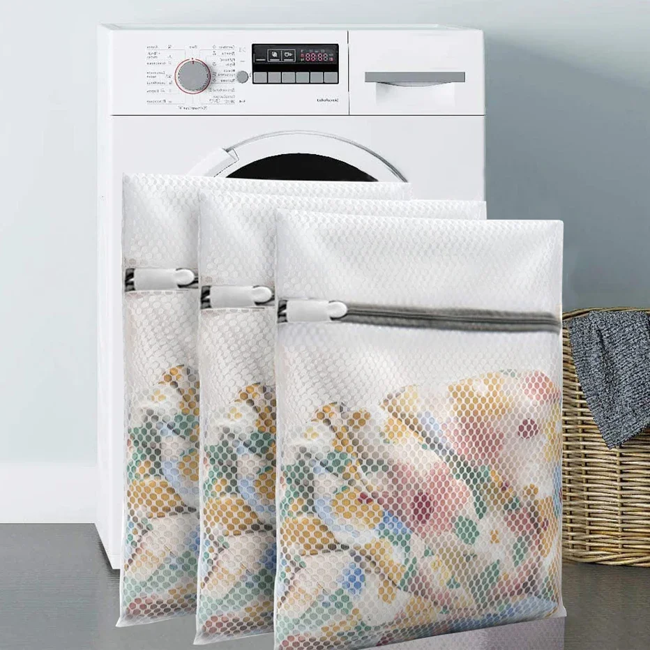 3pcs Zippered Mesh Laundry Bag Polyester Laundry Wash Bags Coarse Net Laundry Basket Laundry Bags for Washing Machines Bra Bag