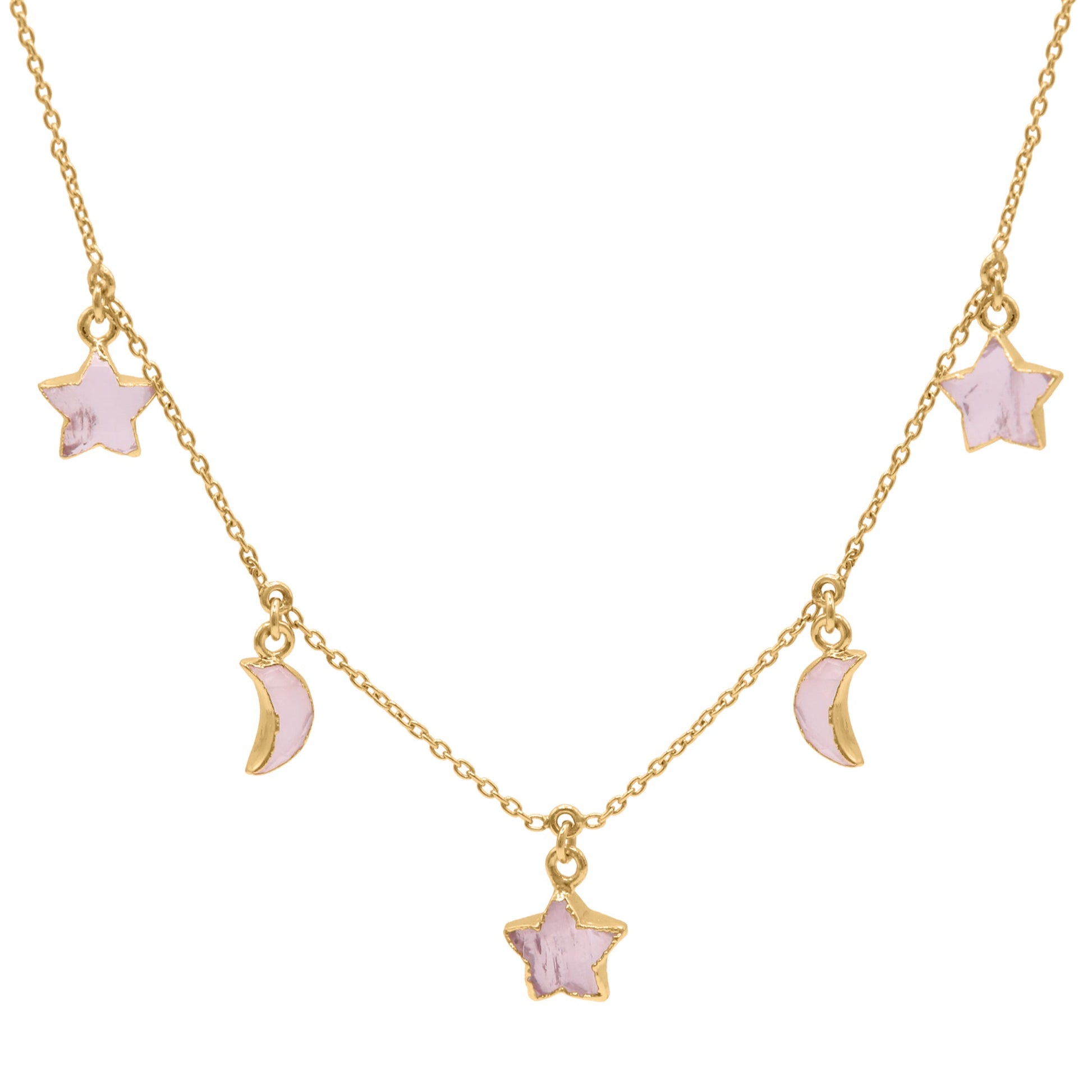 Adela Rose Quartz Star & Moon Charm Necklace | 18k Gold Plated