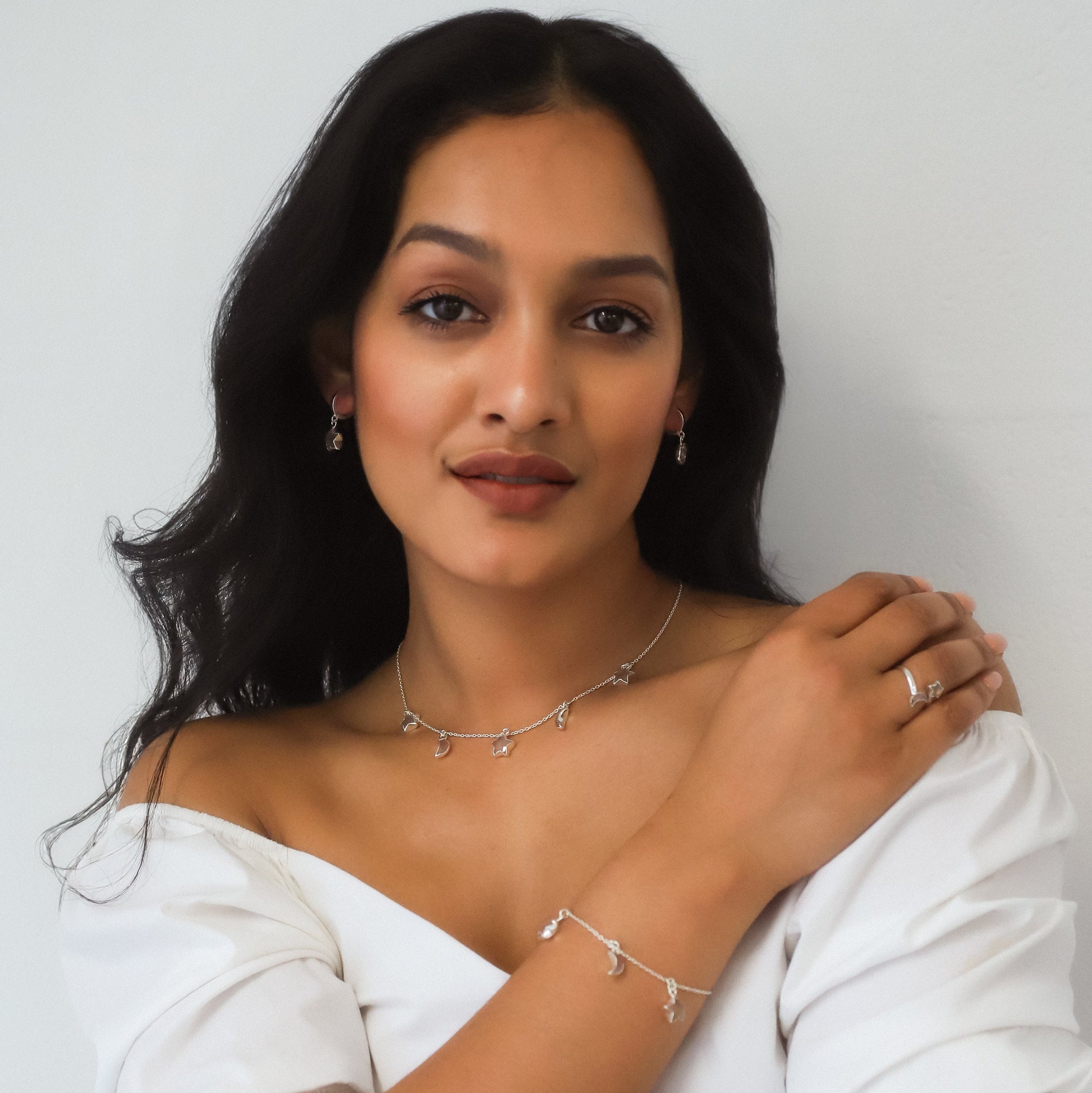 Celebrate self-love and harmony with Adela, our absolutely stunning new raw crystal necklace featuring enchanting rose quartz star & moon charms hanging from a silver chain.