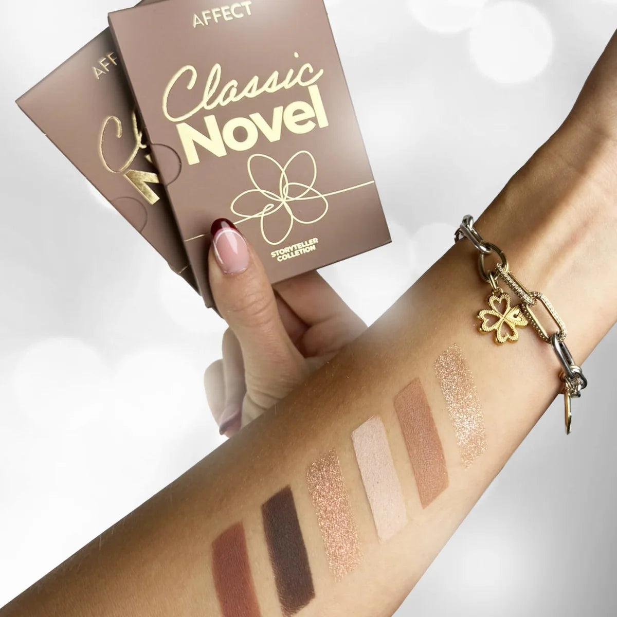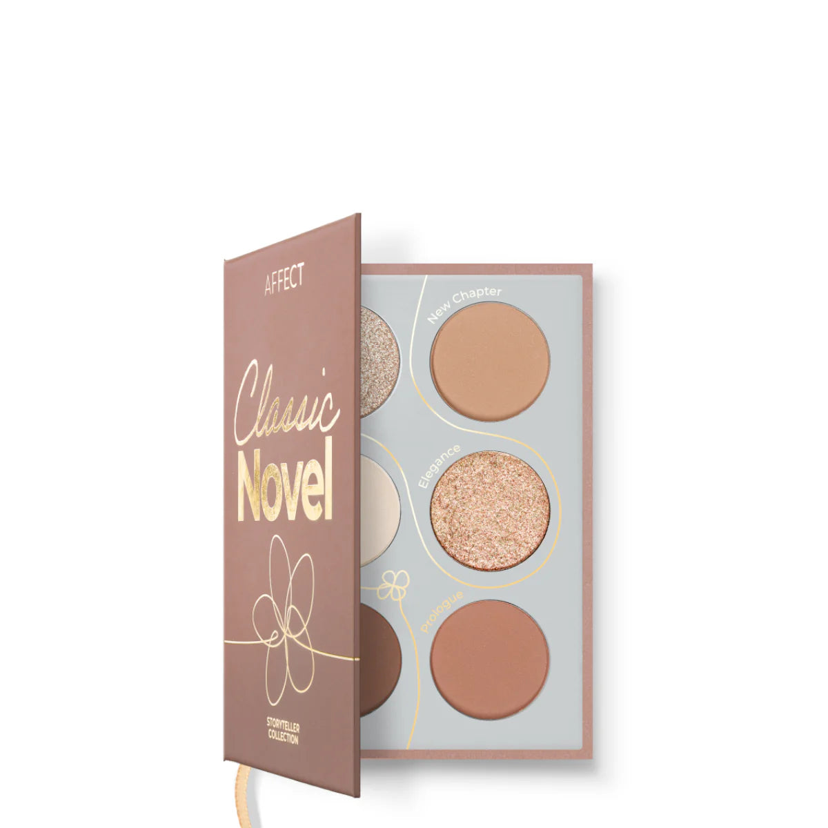 The Affect Classic Novel Mini Eyeshadow Palette transports you to the enchanting world of literature and timeless tales with its elegant design and captivating hues. Part of the Storyteller collection, this palette is not just an eyeshadow set but a charming miniature book filled with colours and makeup stories waiting to be created. Encased in a sophisticated brown cover with a subtle floral motif, the Classic Novel palette is perfect for lovers of classic beauty. It features warm, natural shades ranging from beiges to browns, along with two dazzling shimmers in gold and a golden opalescent apricot, allowing you to craft both delicate everyday looks and subtly refined styles for special occasions.