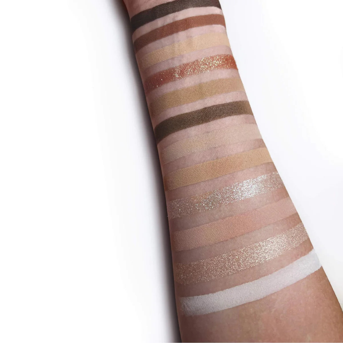 - Includes nine matte and three shimmering eyeshadows