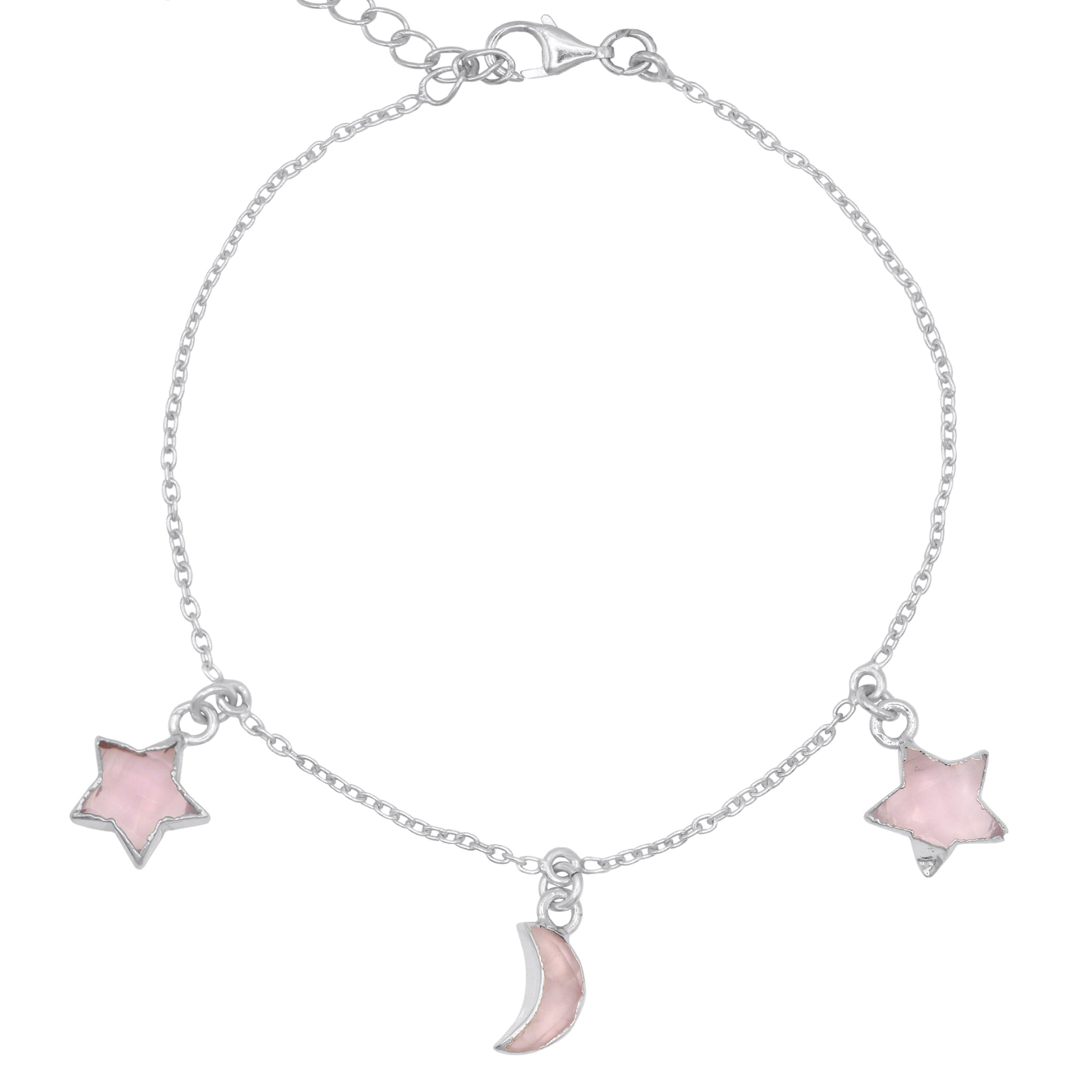 Amelia Rose Quartz Star & Moon Charm Bracelet | 925 Sterling Silver
