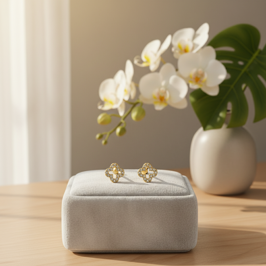 Ameya Clover Crystal Stud Earrings – 18K Gold Plating on Sterling Silver