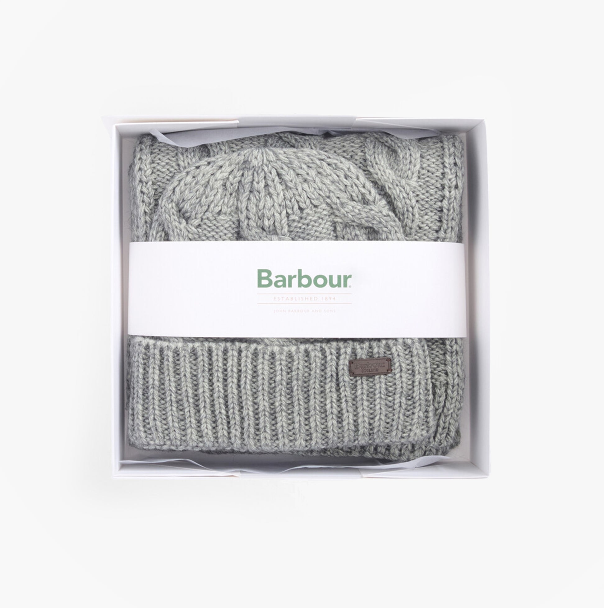 Barbour JESMOND BEANIE AND SCARF Gift Set Mens Mid Grey