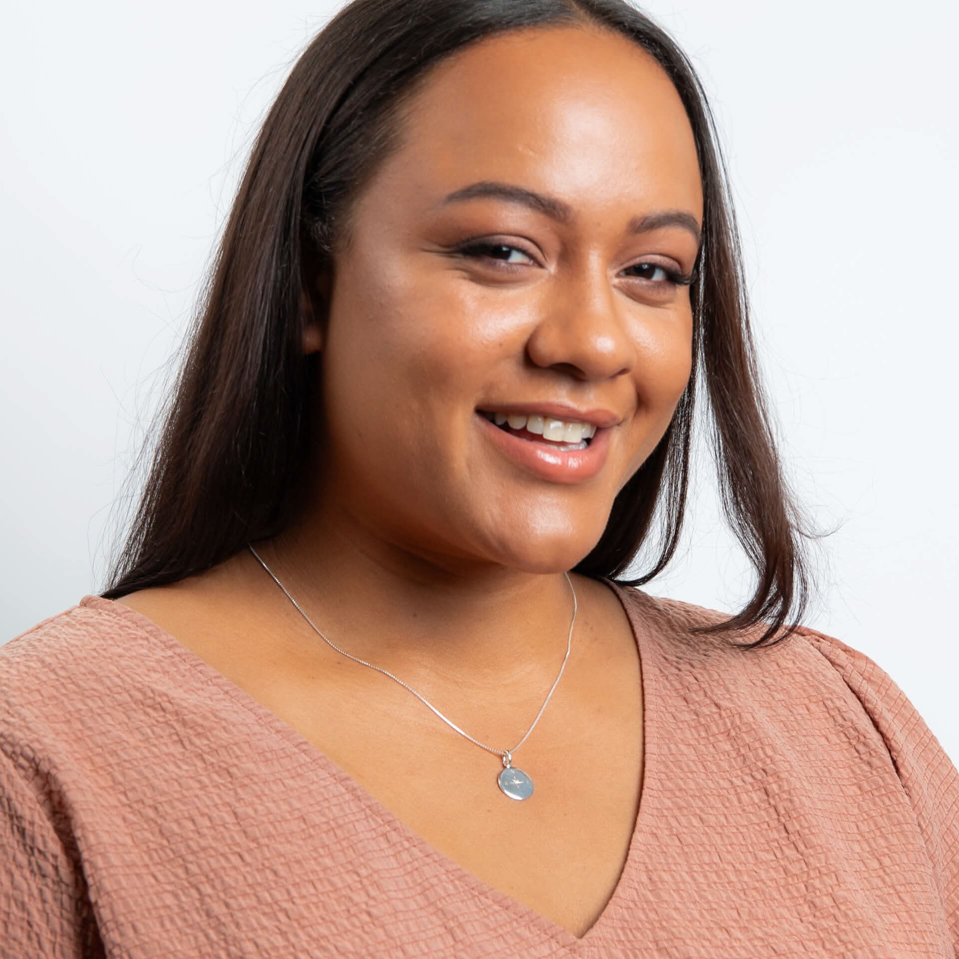 Navigate life’s journey with this compass design pendant. Crafted from recycled sterling silver, the disc features a finely detailed compass design, symbolising guidance and direction, making it the perfect accessory for those who embrace the spirit of adventure. The polished surface of the pendant catches the light beautifully, highlighting the intricate north, south, east, and west engravings that surround a central compass rose. This piece effortlessly complements any outfit, whether you’re exploring the great outdoors or seeking new horizons in your daily life.