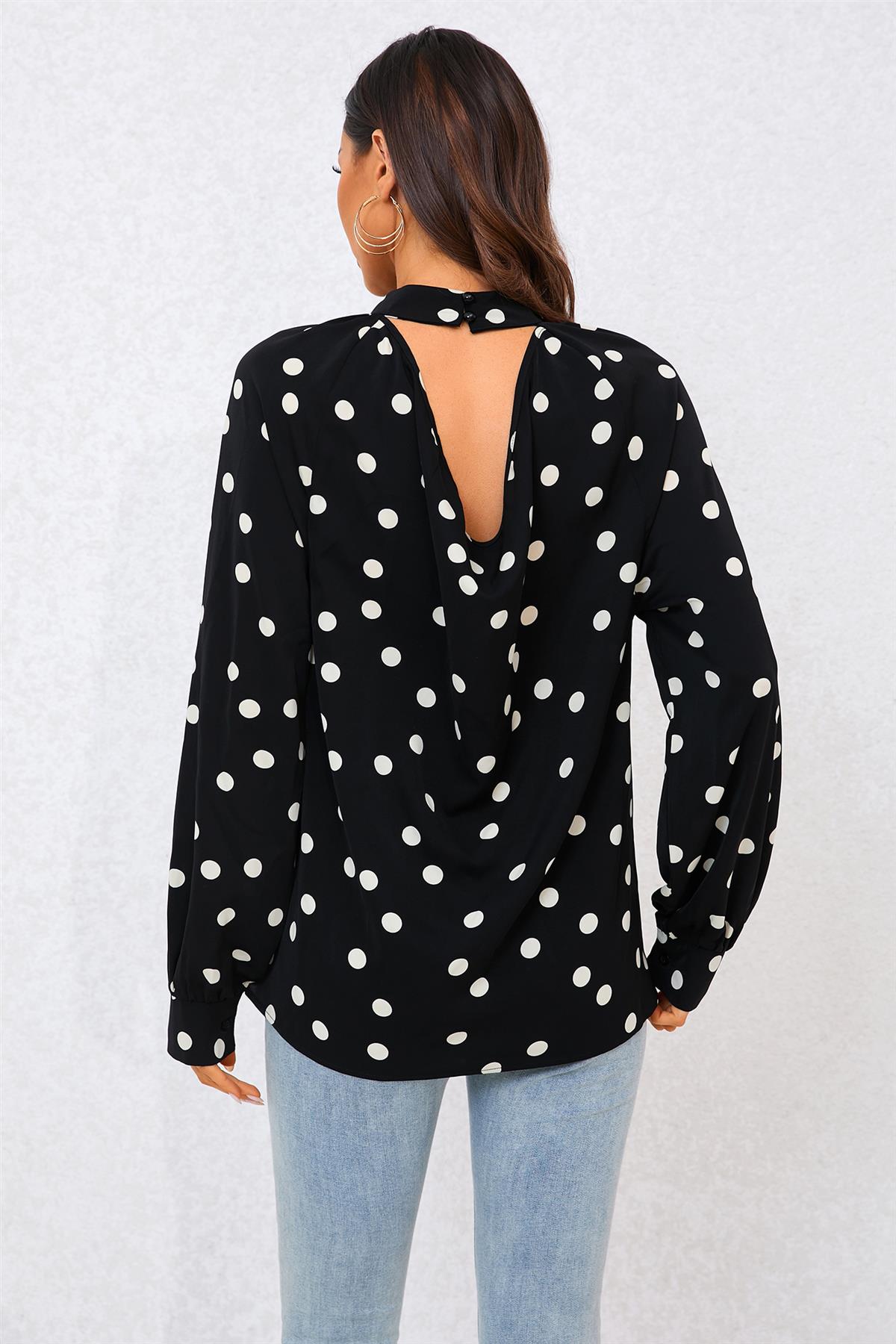 Long Sleeves High Neck Blouse Top with Back Cut Detail In Black.