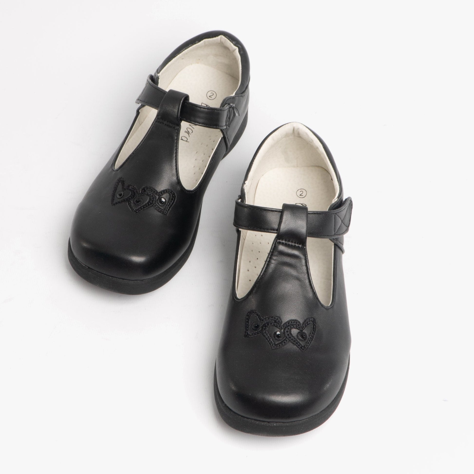 Boulevard Girls Touch Fasten T-Bar School Shoes Black Matt