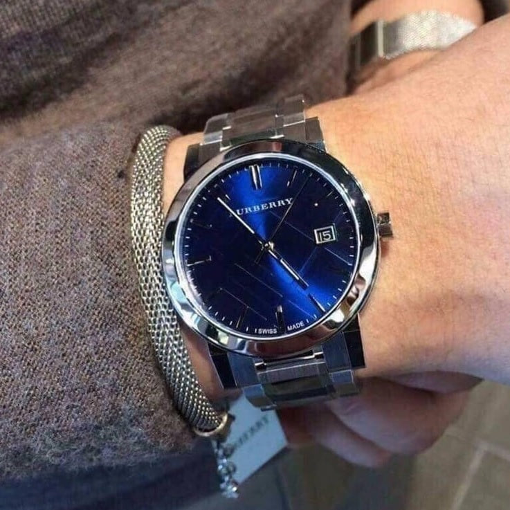 - Elegant blue dial with Burberry signature detailing
