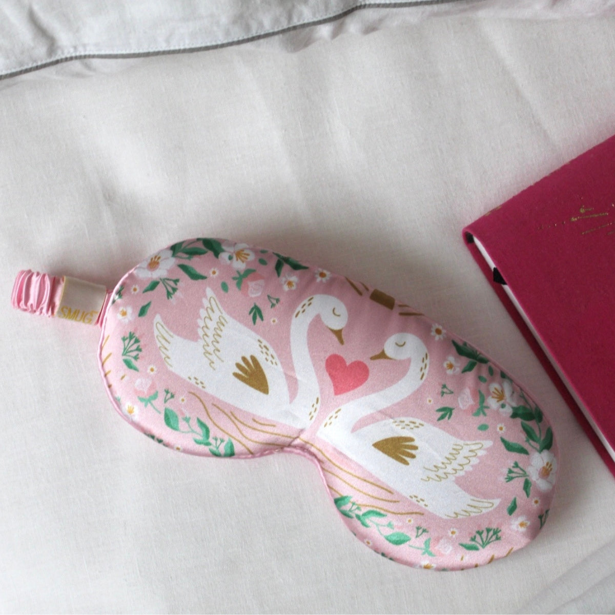 Bring elegance to your nighttime routine with the Swans Print Cloud Sleep Mask. Featuring a delicate swan print on ultra-soft padded satin, this luxurious mask combines the light-blocking fit of our contoured sleep masks with the skin-friendly benefits of satin.