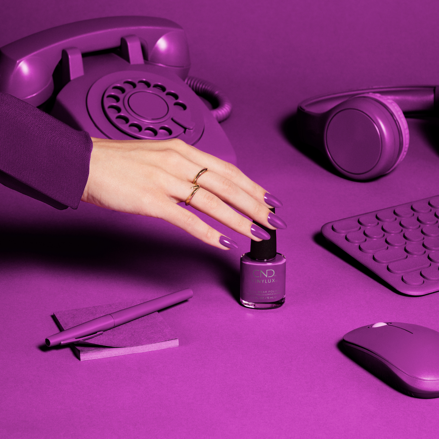 Must be used as a system: Colour = Adhesion + Top Coat = Time-enhanced durability. Shake vigorously to blend. Apply two thin layers of CND™ Vinylux™ Colour Coat, sealing the free (tip) edge. Finish with one layer of CND™ Vinylux™ Top Coat. Apply CND™ SolarOil™ to keep skin and nails nourished and protected.