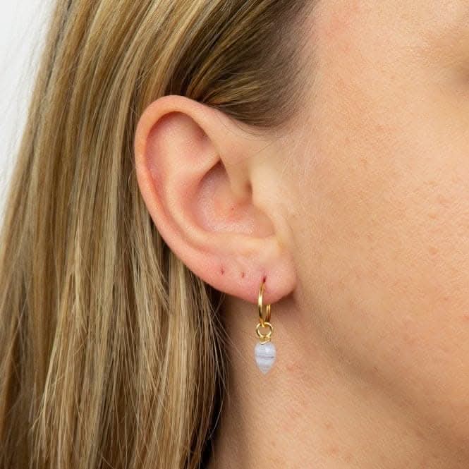 December Yellow Gold Plated Birthstone Chalcedony Stone Hoop Charm Earring Y2672