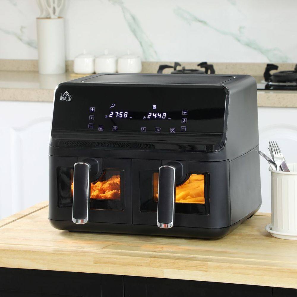 Dual Air Fryer 8L Family Size w/ 2 Basket 8 Presets Cookbook Timer 2500W