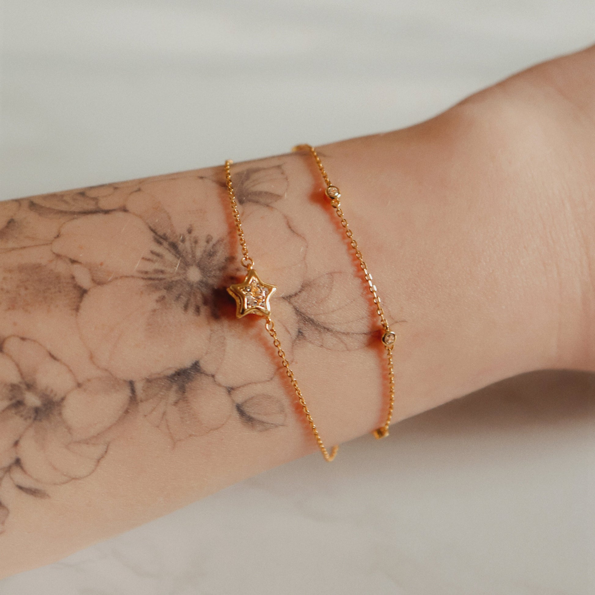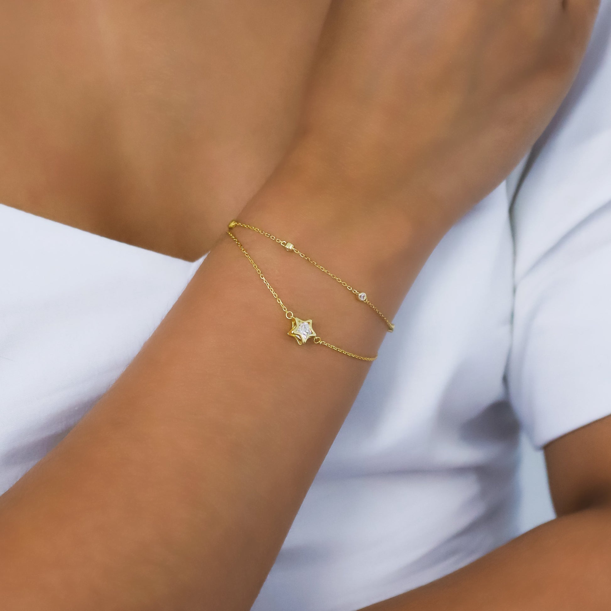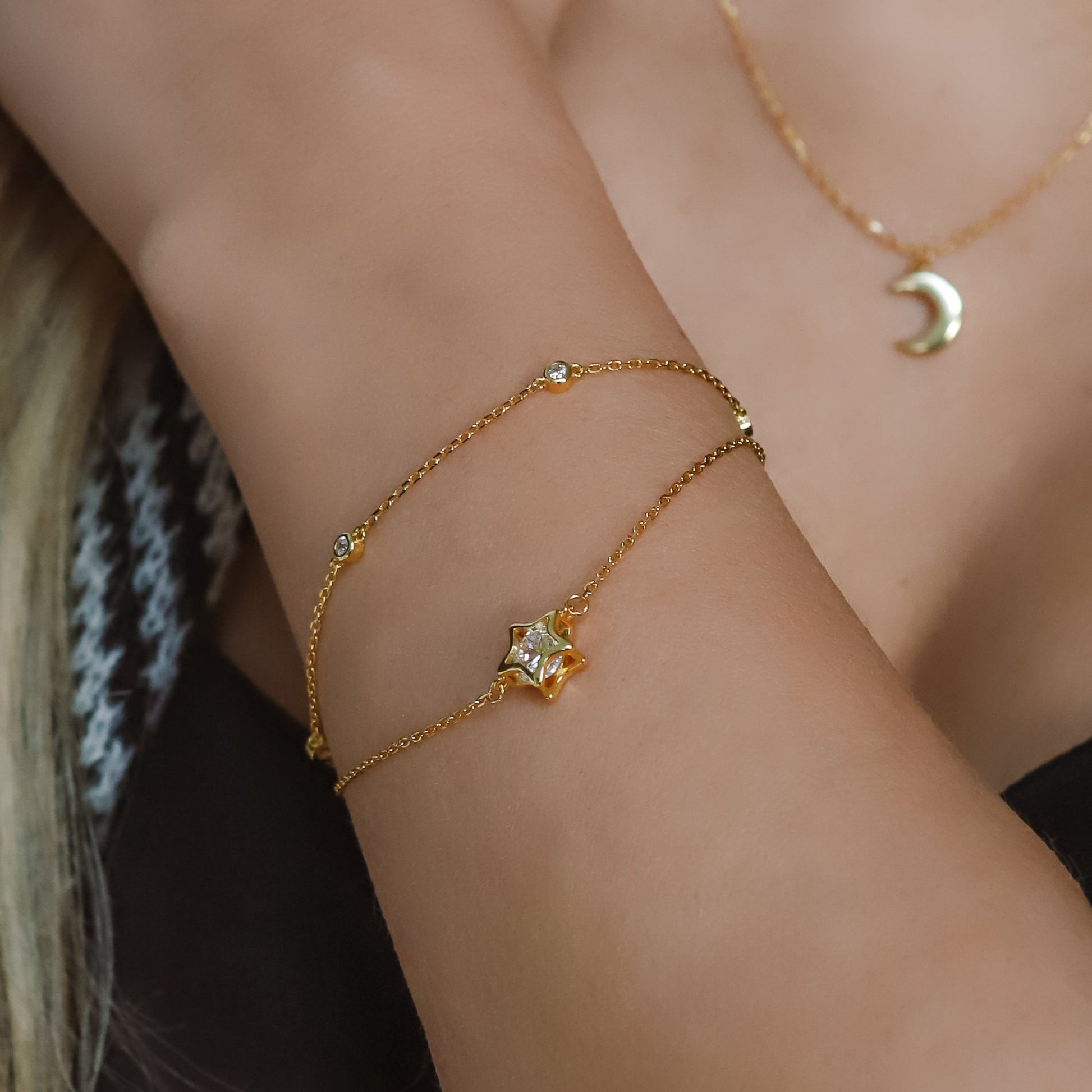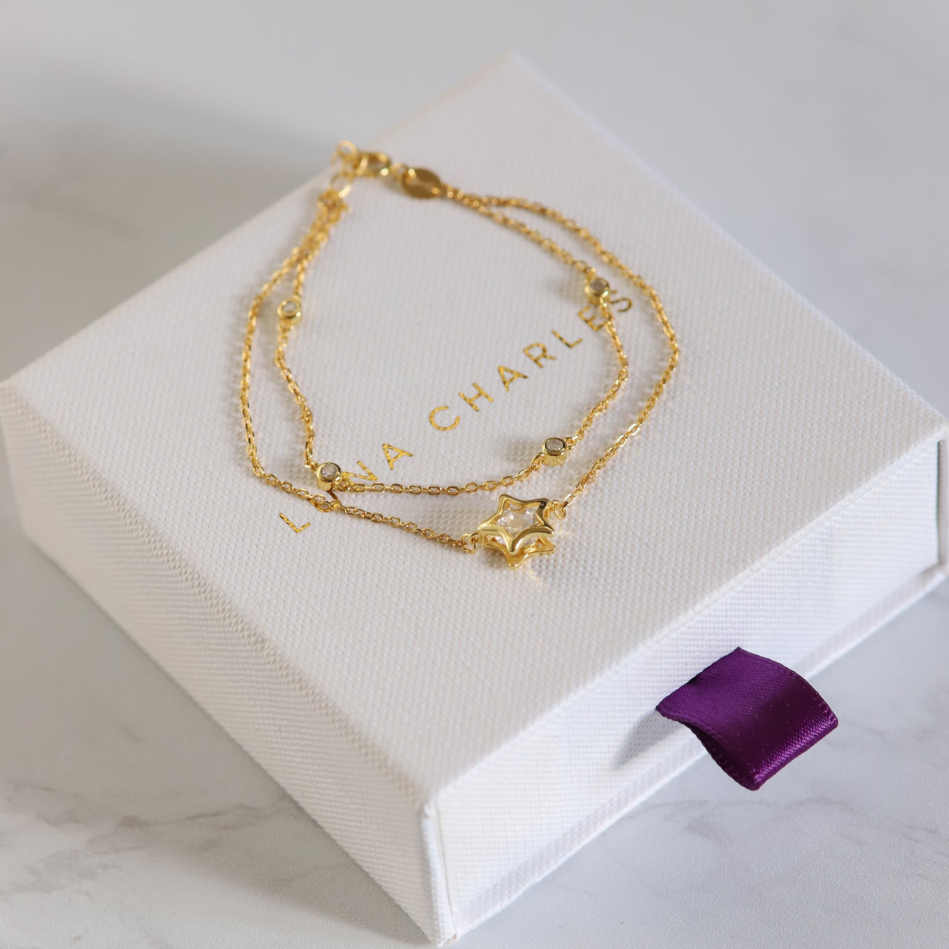 Esha Double Chain Star Bracelet | 18k Gold Plated