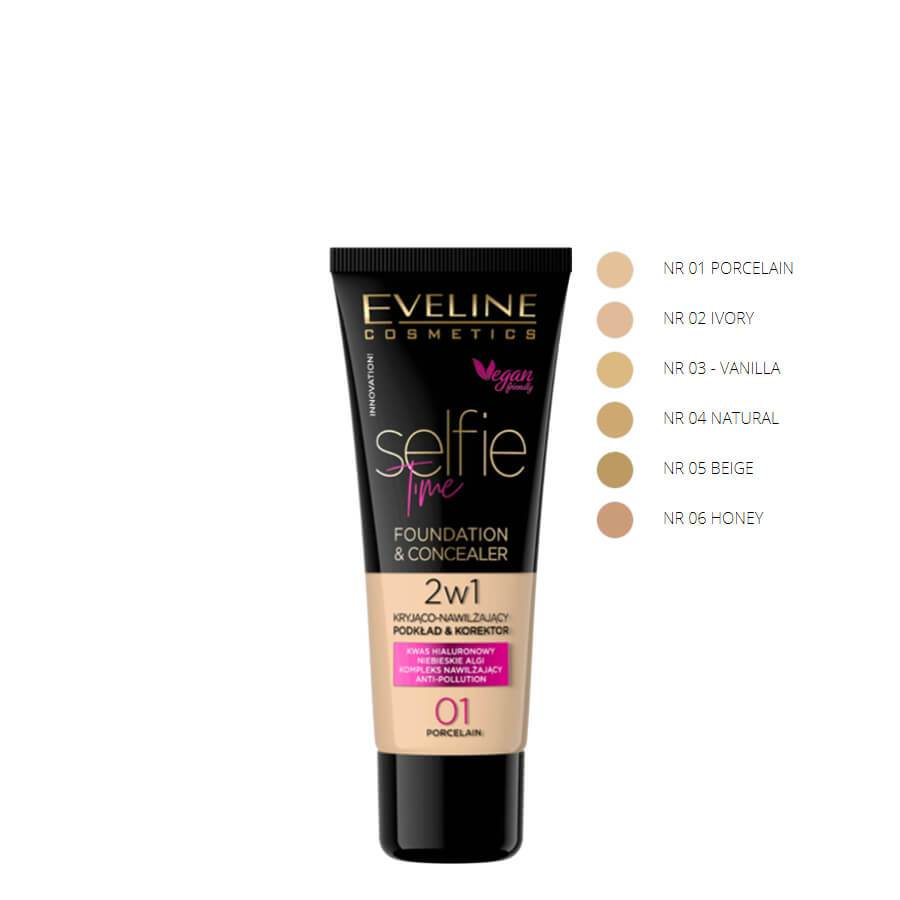 2in1 Foundation and Concealer Selfie Time is a cosmetic that combines the effects of 2 products: foundation and concealer. It allows gradation of coverage, hides all skin imperfections. The light texture adapts to the skin, ensuring a long-lasting make-up effect. Thanks to hyaluronic acid and vitamin E, the foundation moisturizes the skin for a long time, it also smoothes and cares with blue algae. The skin gets a perfect look - READY TO DO SELFIE.