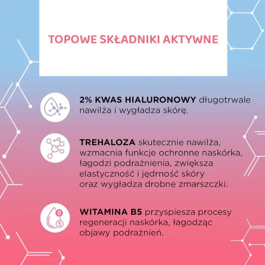 - 2% hyaluronic acid deeply hydrates and nourishes the skin. Perfectly smoothes it and makes it more flexible,