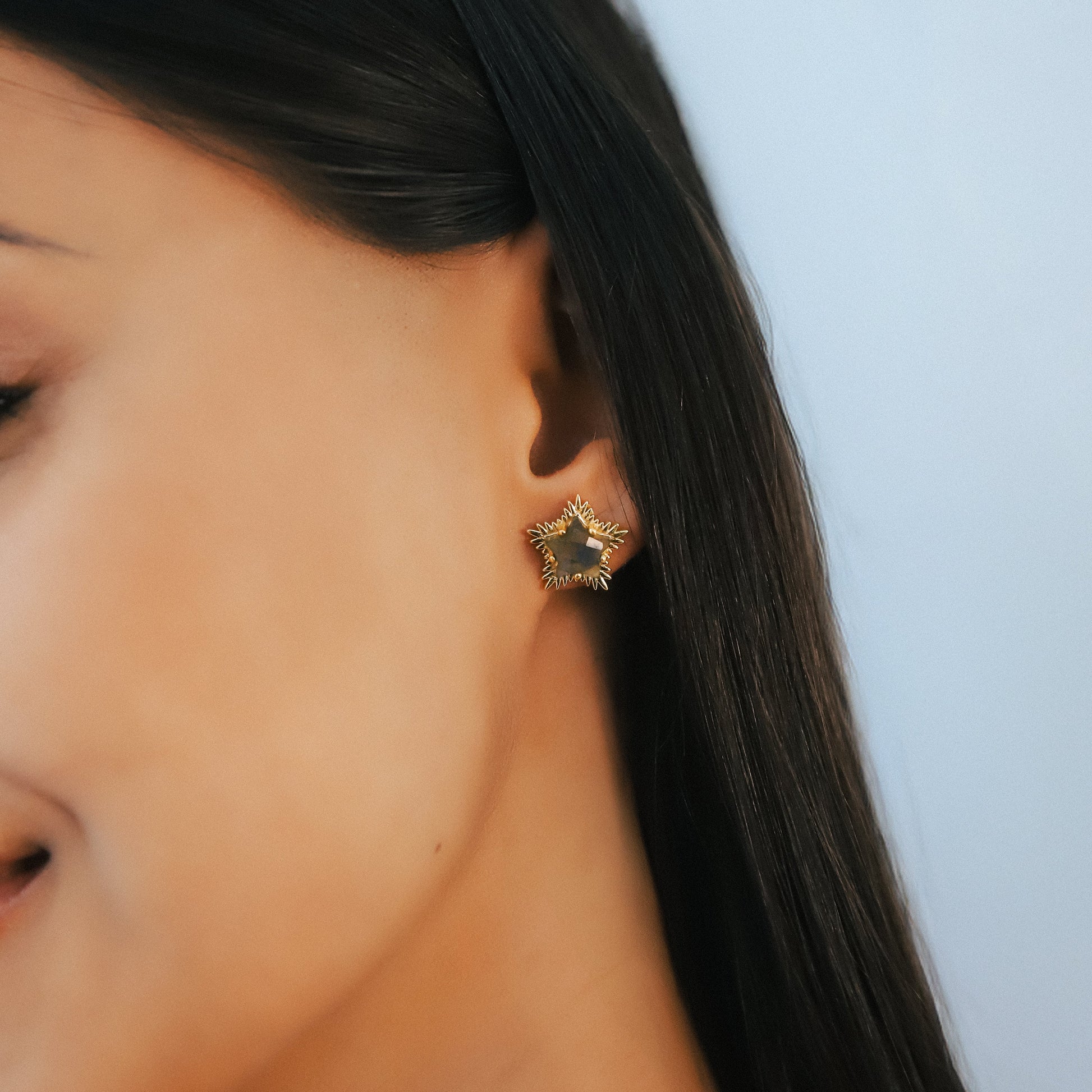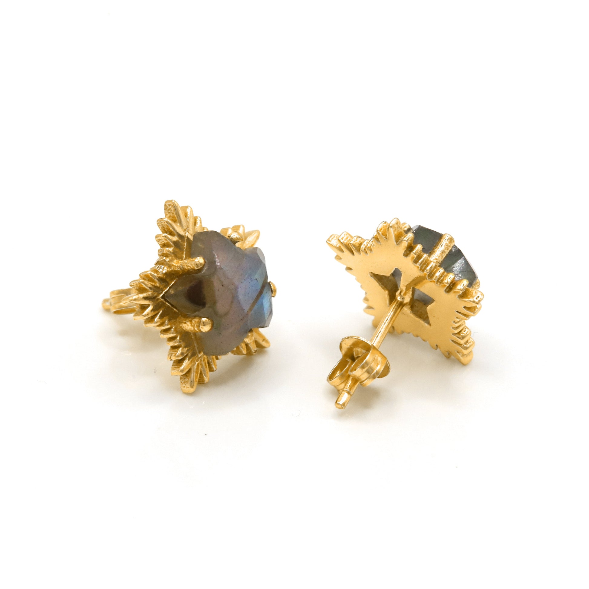 Felicity Labradorite Spiky Star Stud Earrings | 18k Gold Plated