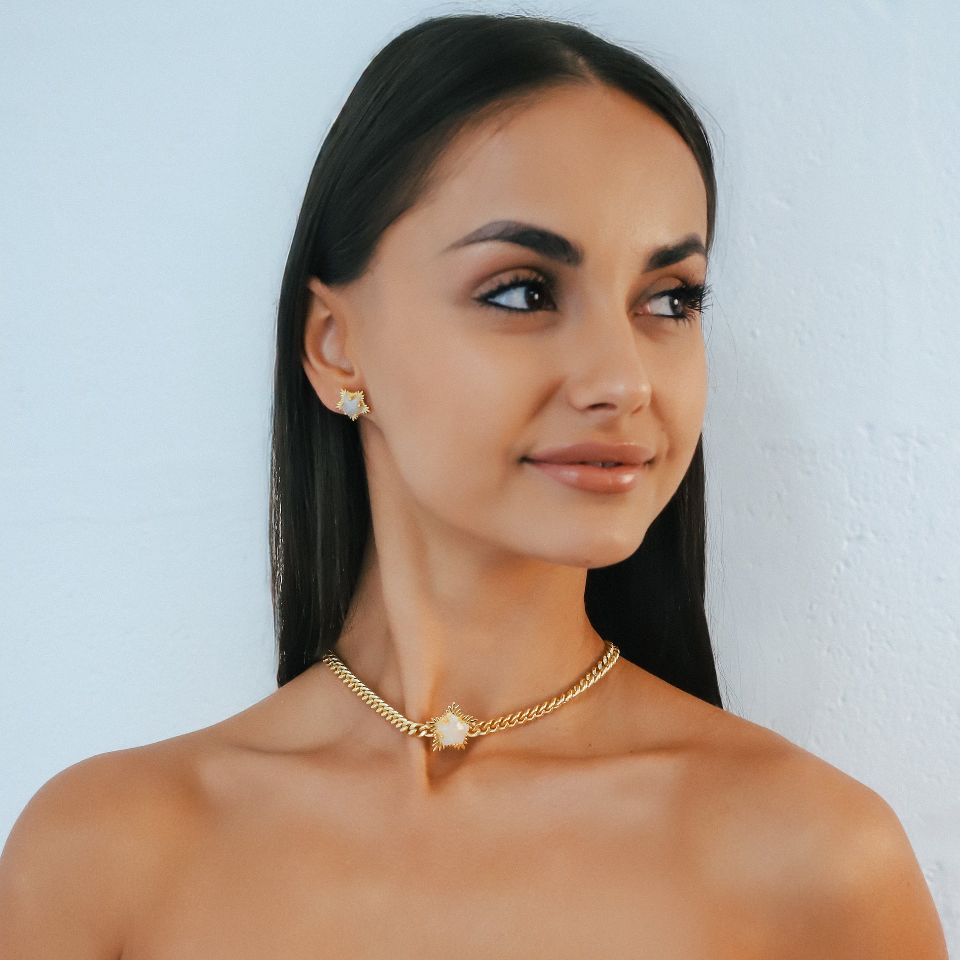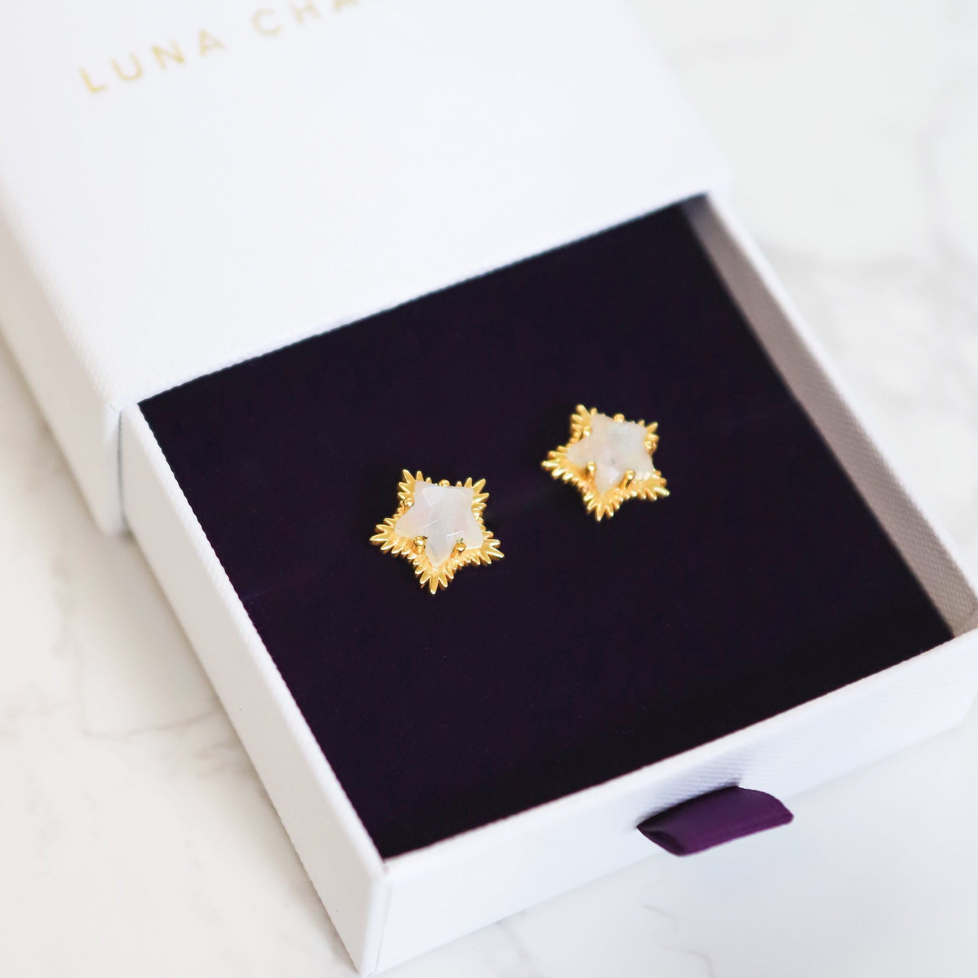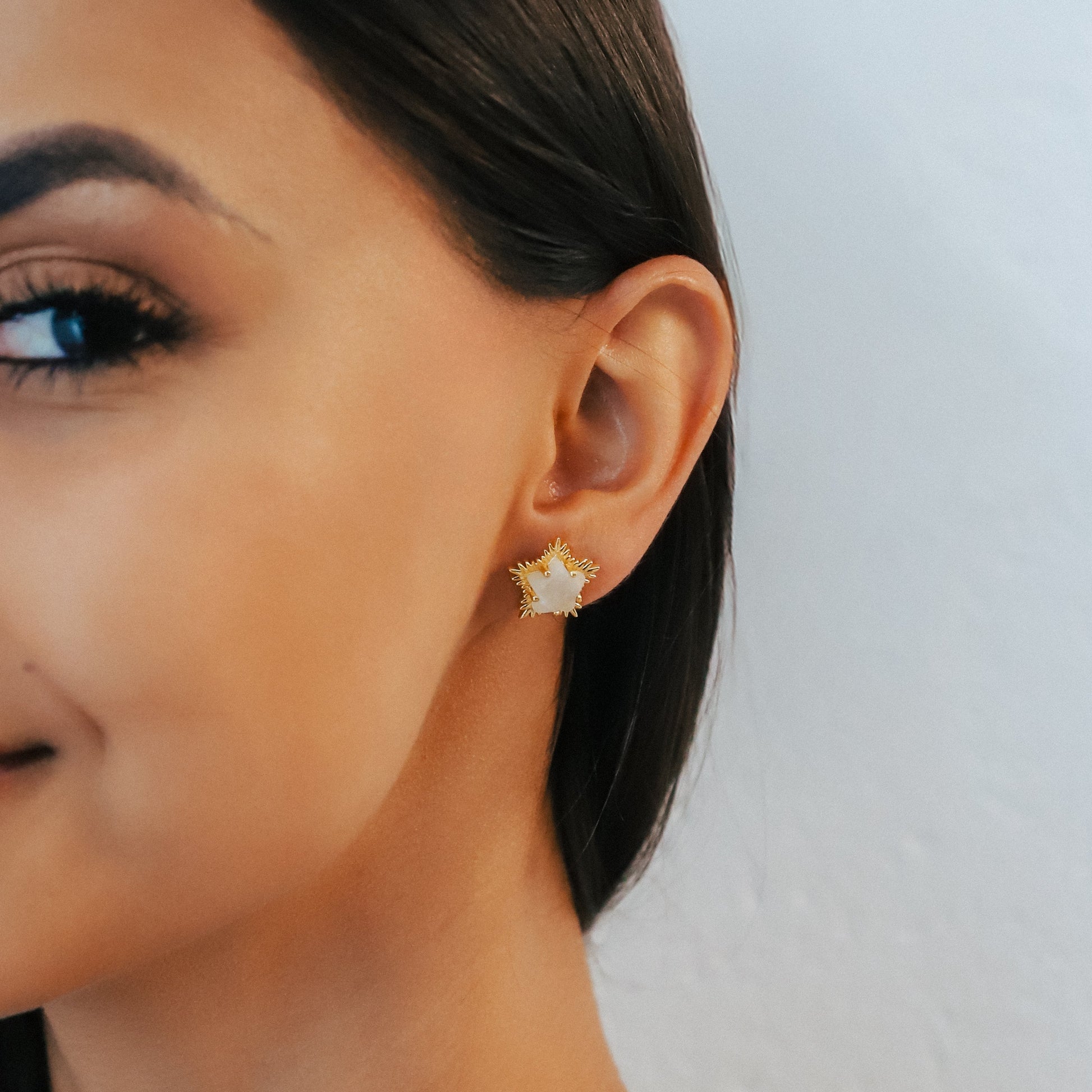 Felicity Moonstone Spiky Star Stud Earrings | 18k Gold Plated