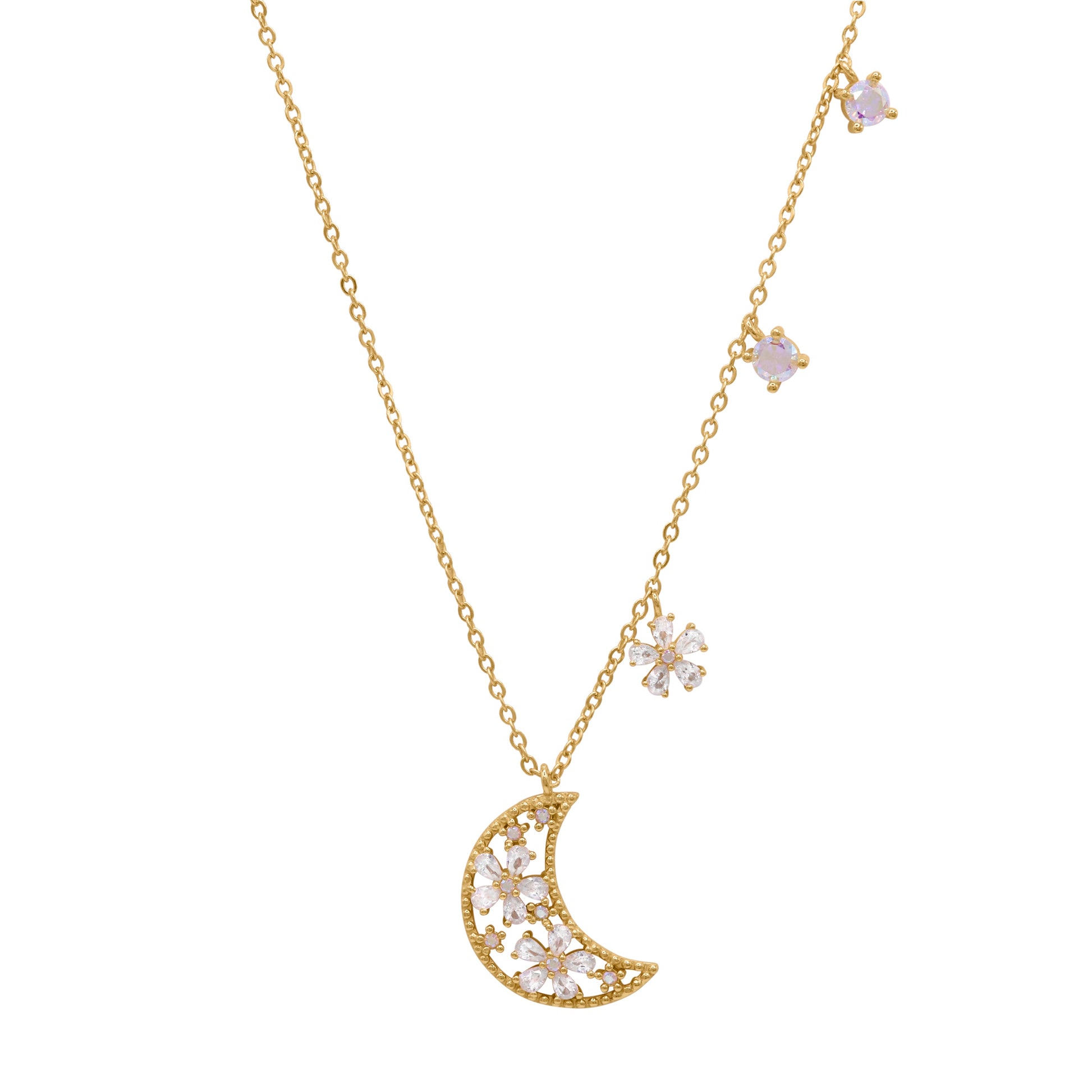 Flora Flower Moon Pendant Necklace | 18k Gold Plated