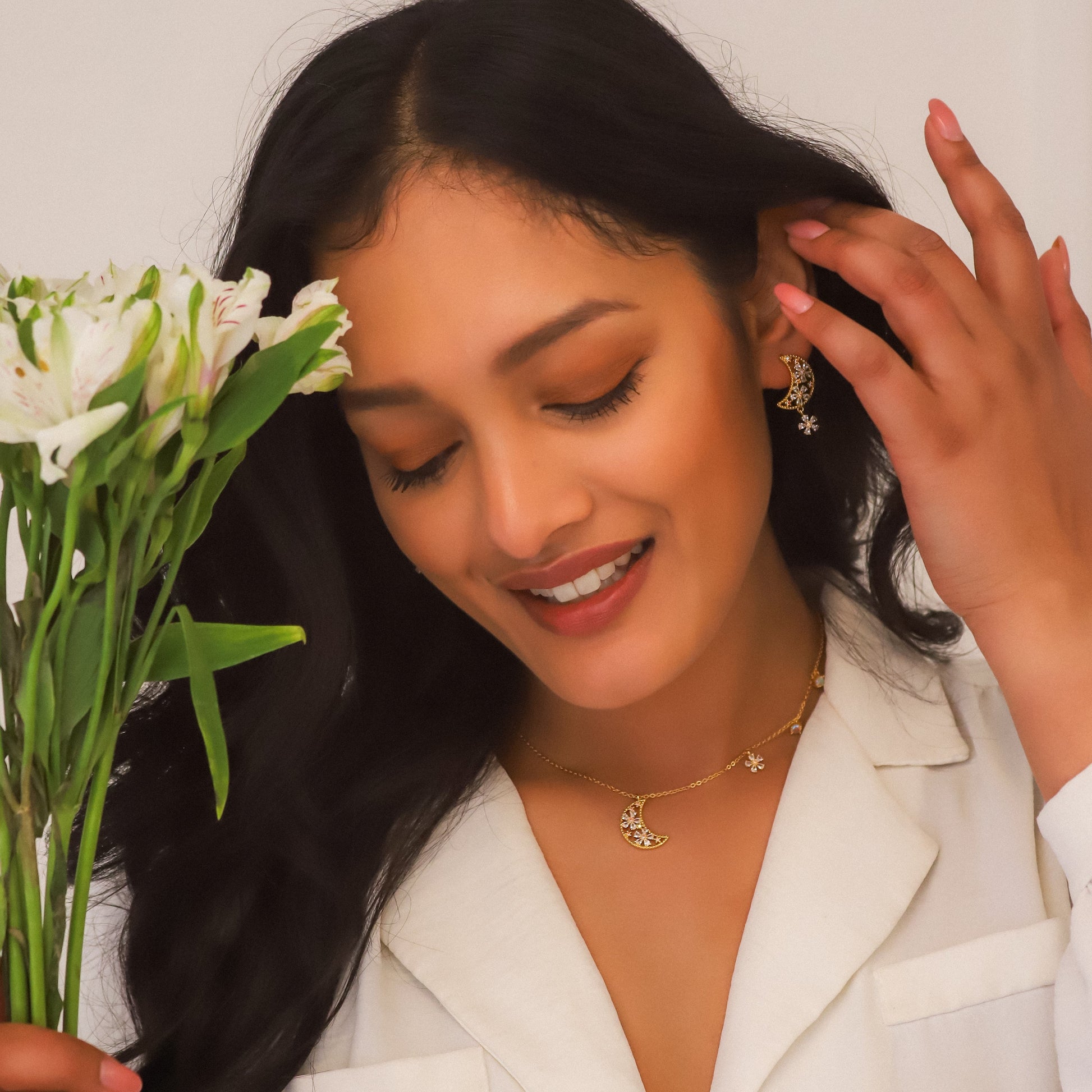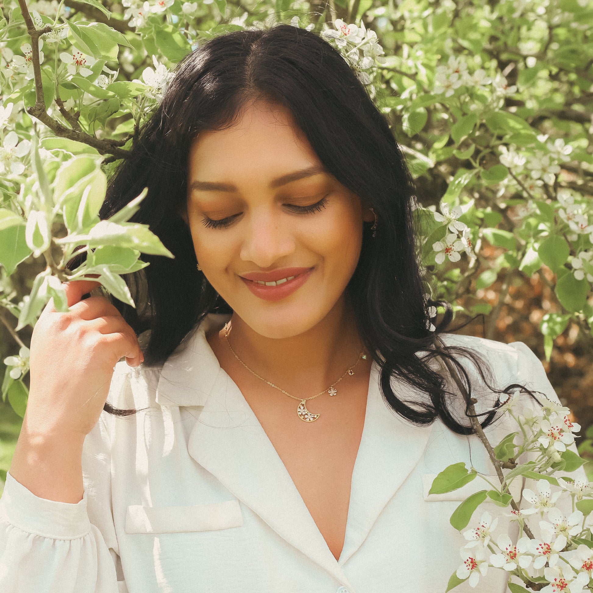 Say hello to your new signature piece – the Flora Flower Moon Necklace, inspired by the radiant bloom of a full moon and the magic of spring skies.