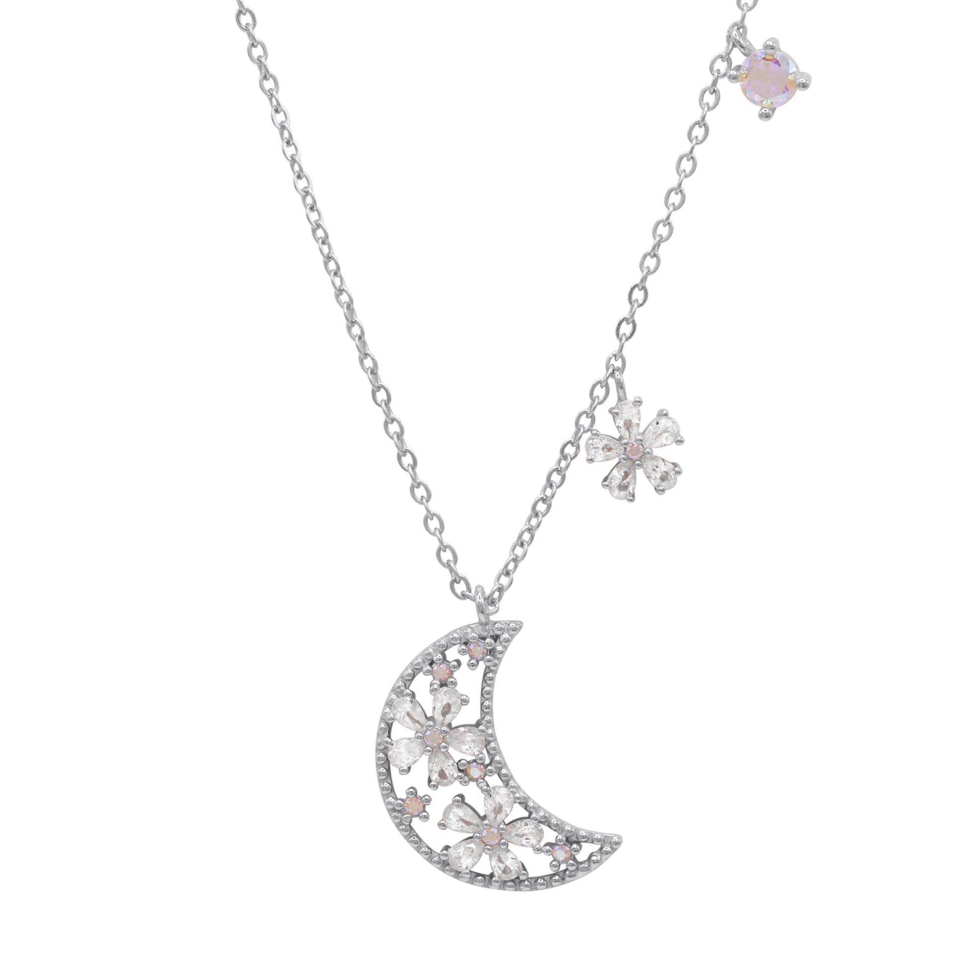 Flora Flower Moon Pendant Necklace | 925 Sterling Silver