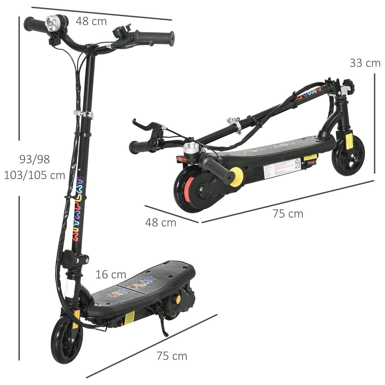 Ride in style, thanks to this HOMCOM kids electric scooter, making outdoors super exciting. After charging for 5-8 hours, they can travel for 8-10km/h, with a maximum speed of 12km/h. Adjustable handlebars make it suitable for different heights, so they're comfortable when riding. Finished with LED headlights, which has three modes strong, weak and flicker, keeping them visible at night, a bell to warn others nearby and brakes to bring the scooter to a swift stop, ensuring they ride safely.