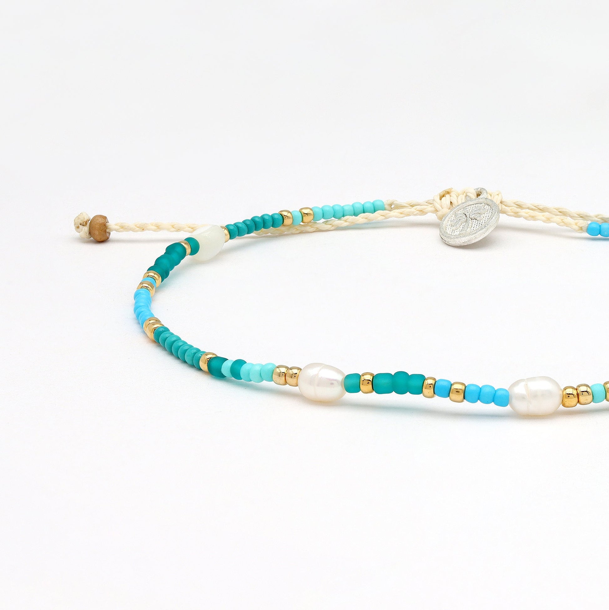 Say hello to your new favourite anklet: the Giada Cinta Pearl Beaded Surf Anklet. Designed by pro surfer Giada Legati, this elegant piece combines natural freshwater pearls, shimmering troca shell beads, and vibrant seed beads on a durable wax polyester cord.