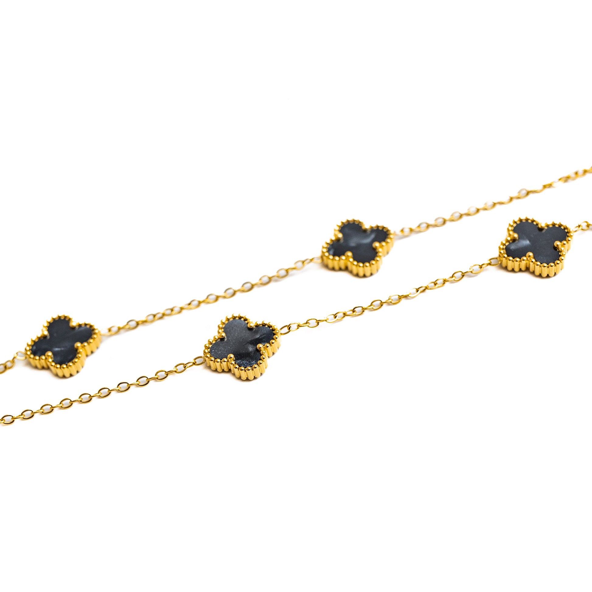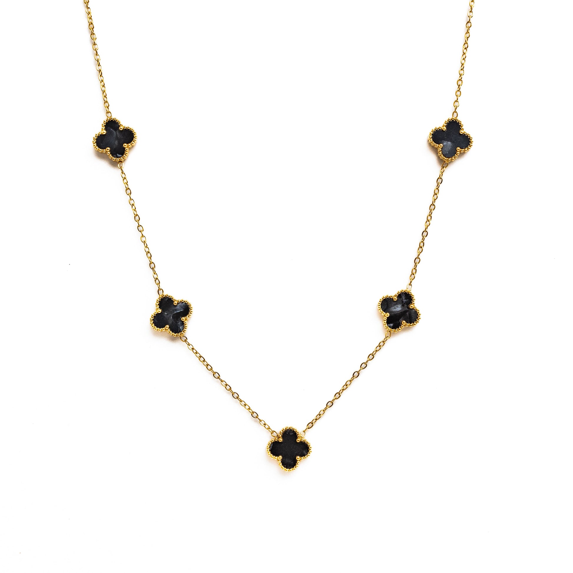 Add some luck to your outfit with our Gold Pearl Clover Necklace. The stunning black clover pendant is adorned with a lustrous golden pearl, creating a unique and elegant look. Elevate your style and make a statement with this one-of-a-kind necklace.