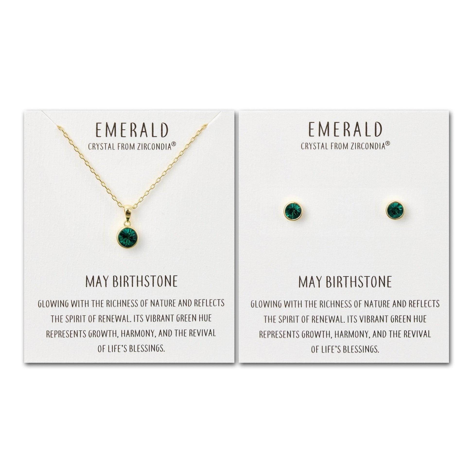 Gold Plated May (Emerald) Birthstone Necklace & Earrings Set Created with Zircondia® Crystals