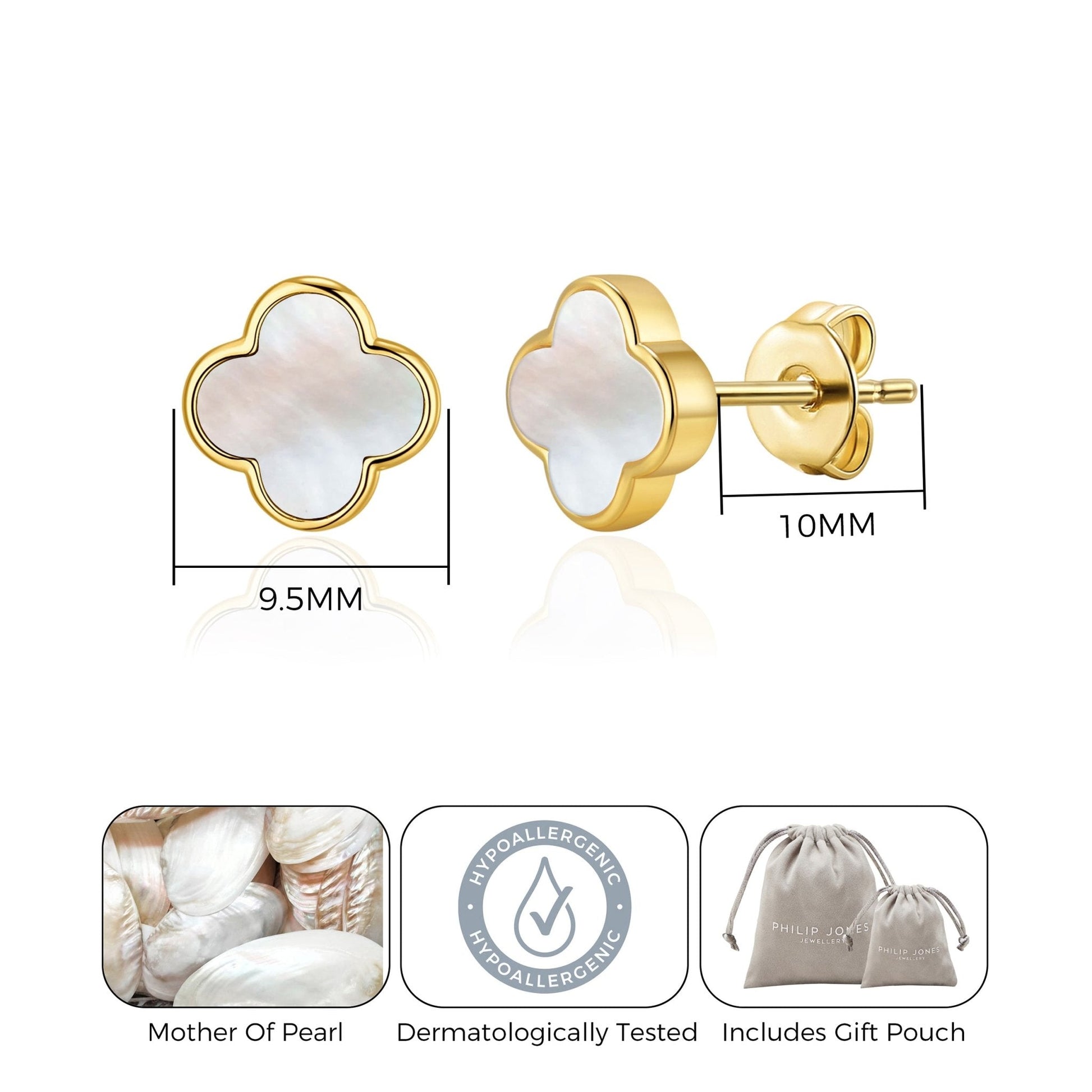 Gold Plated Mother of Pearl Gemstone Clover Earrings
