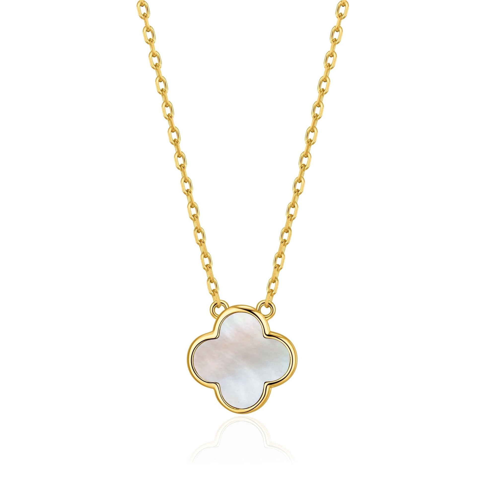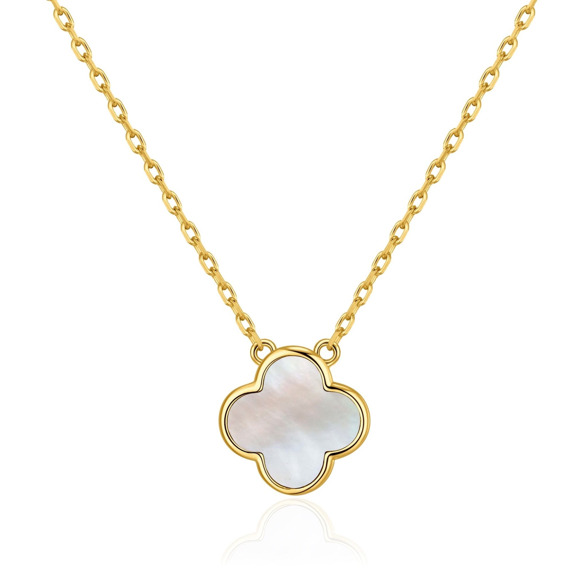 Gold Plated Mother of Pearl Gemstone Clover Necklace
