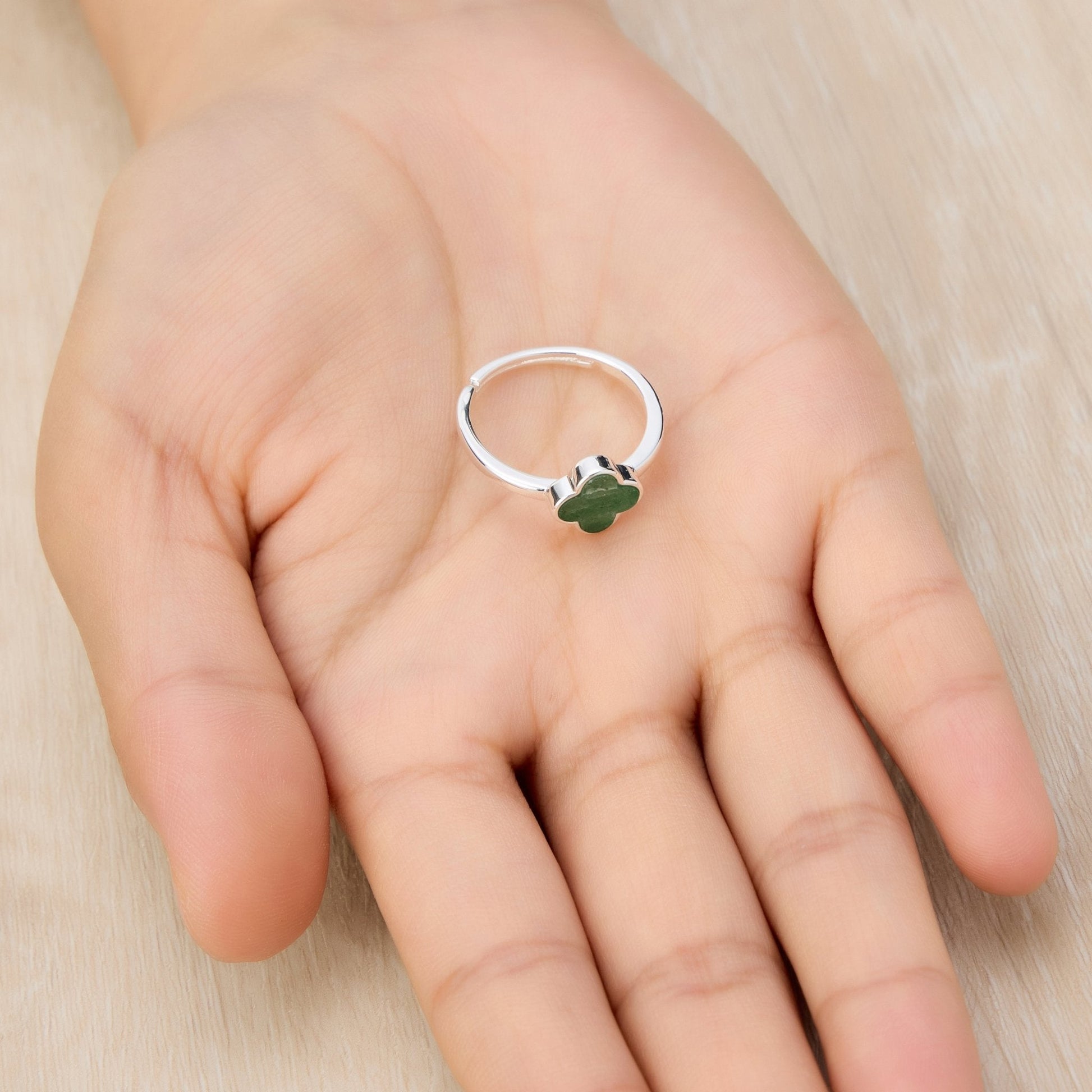 Green Aventurine Gemstone Adjustable Clover Ring