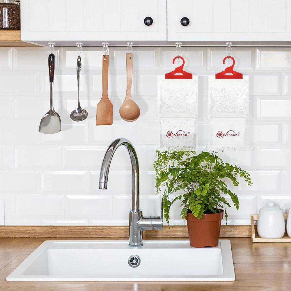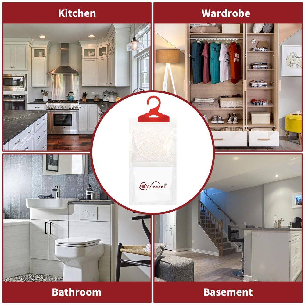 EASY TO USE. You will just have to hang and place the bags anywhere you like. Ideal for rooms including wardrobes, bathrooms, living rooms, bedrooms, basements, caravans, boats, garages anywhere excess moisture is causing a problem. The first drop appears within 1-2 weeks depending on the humidity level. Absorbs up to 3 times its own weight in water.
