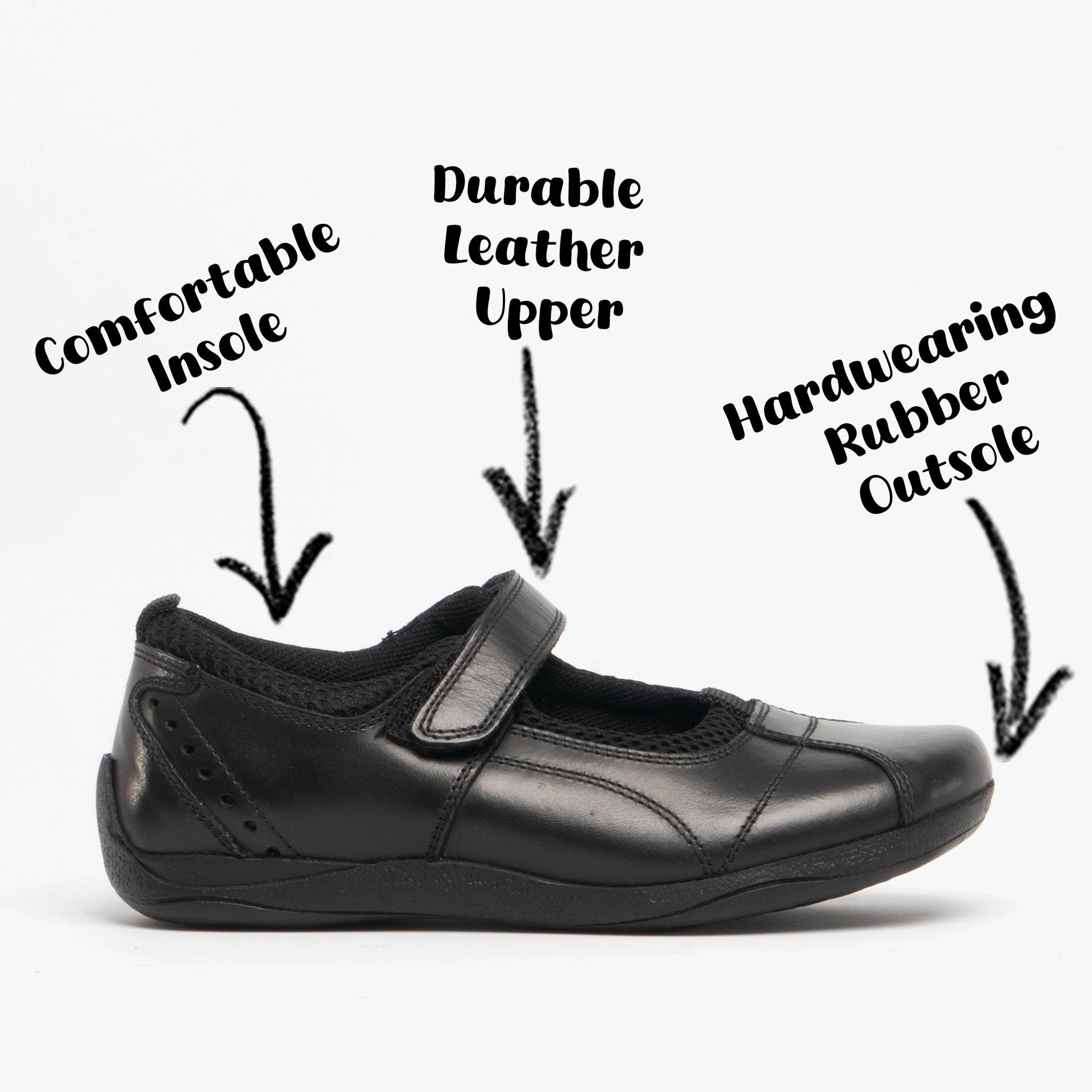 Hush Puppies CINDY Girls Leather School Shoes Black