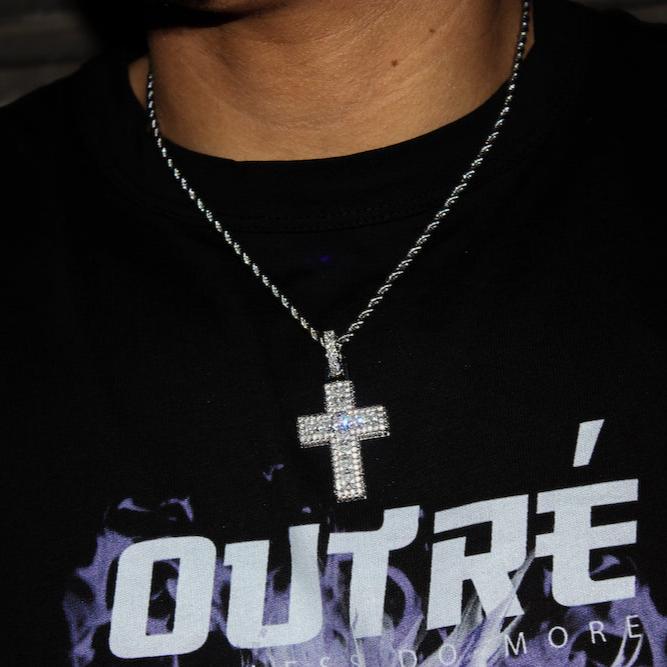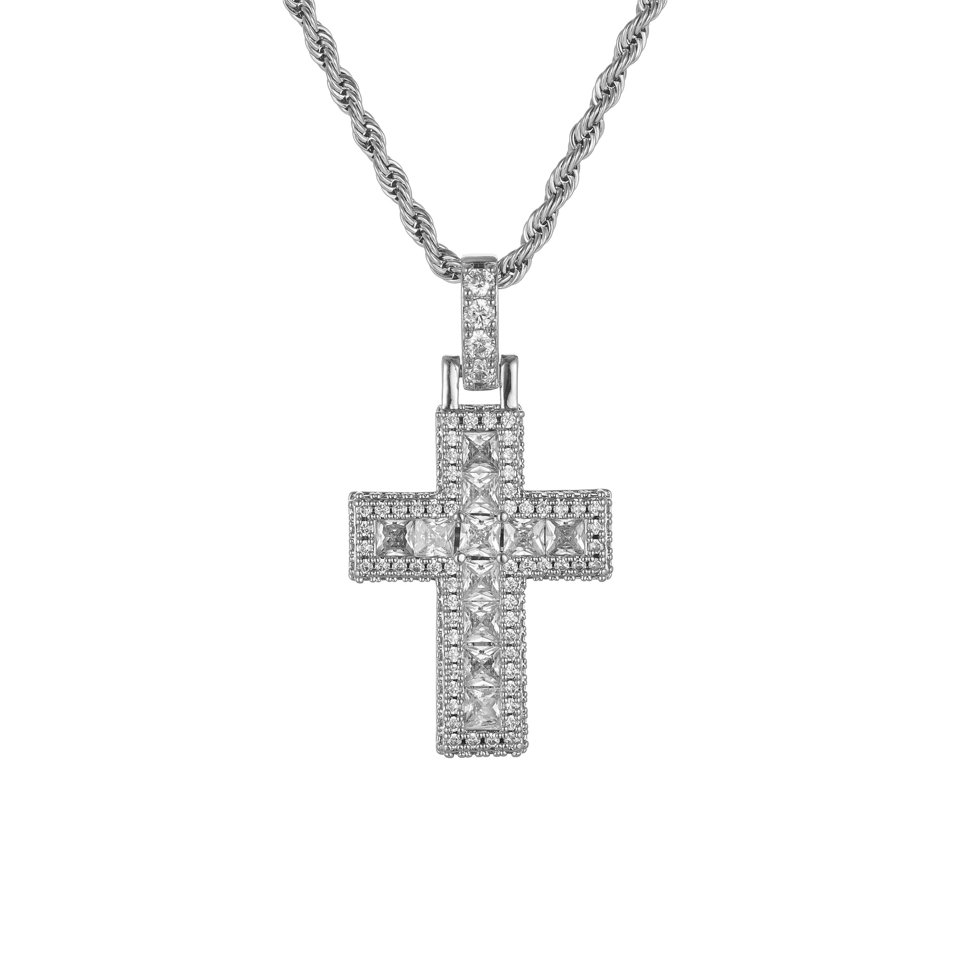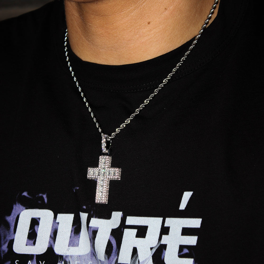 Add a touch of elegance to your outfit with our Iced Baguette Cross Pendant in silver. With its stunning design and shimmering stones, this pendant is sure to catch the eye and make a statement. Perfect for any occasion, it's a must-have addition to your jewellery collection.
