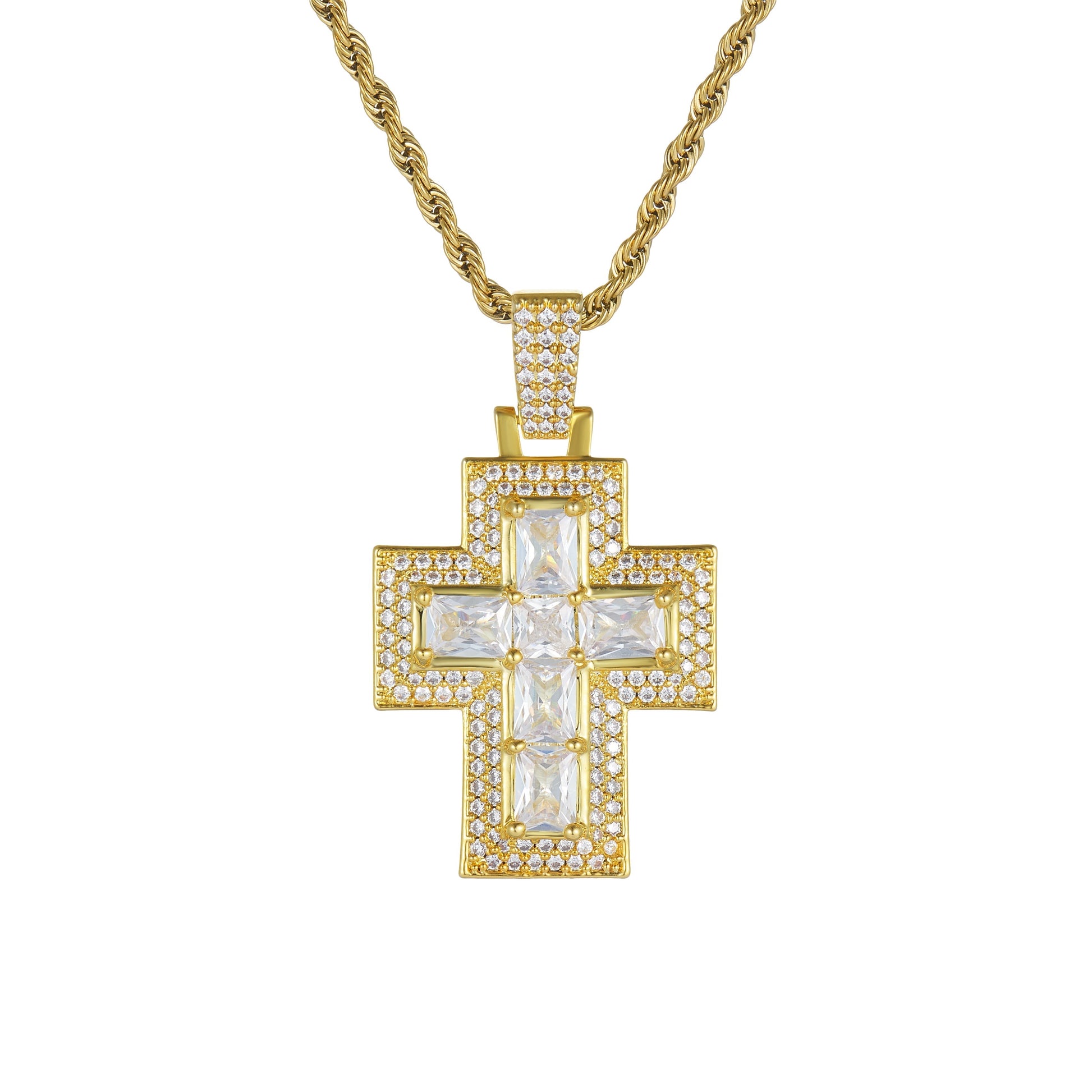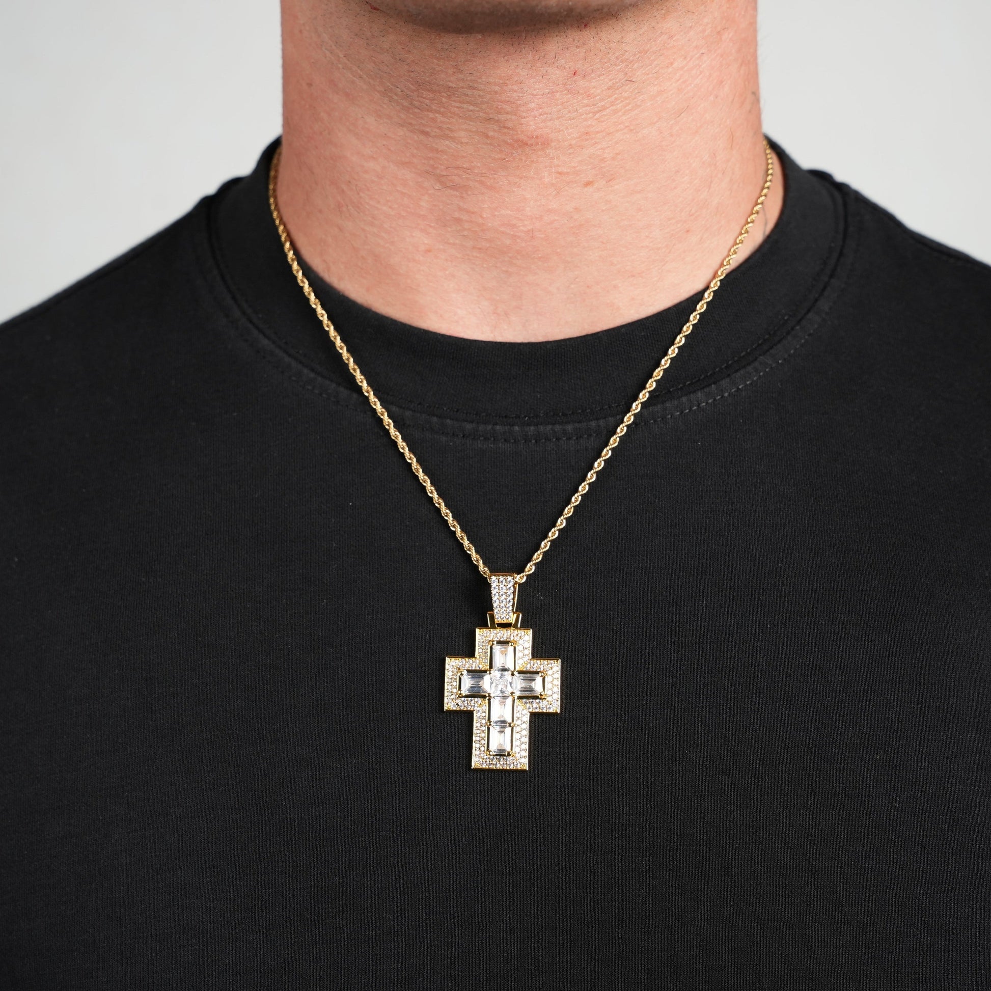The Iced Romeo Cross Pendant is a stunning addition to any jewellery collection. This pendant features a beautifully embellished cross design in luxurious gold, adding a touch of elegance to any outfit. With a unique design and high-quality materials, this pendant is sure to impress and make a statement.