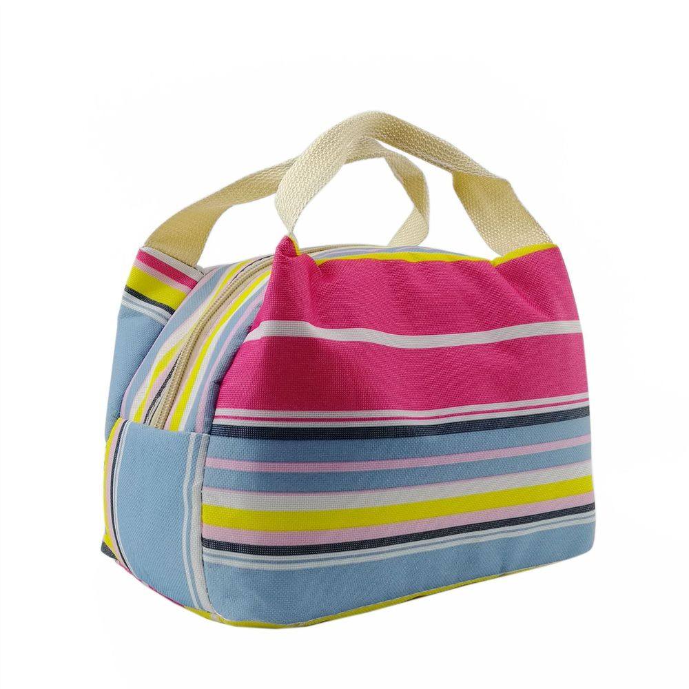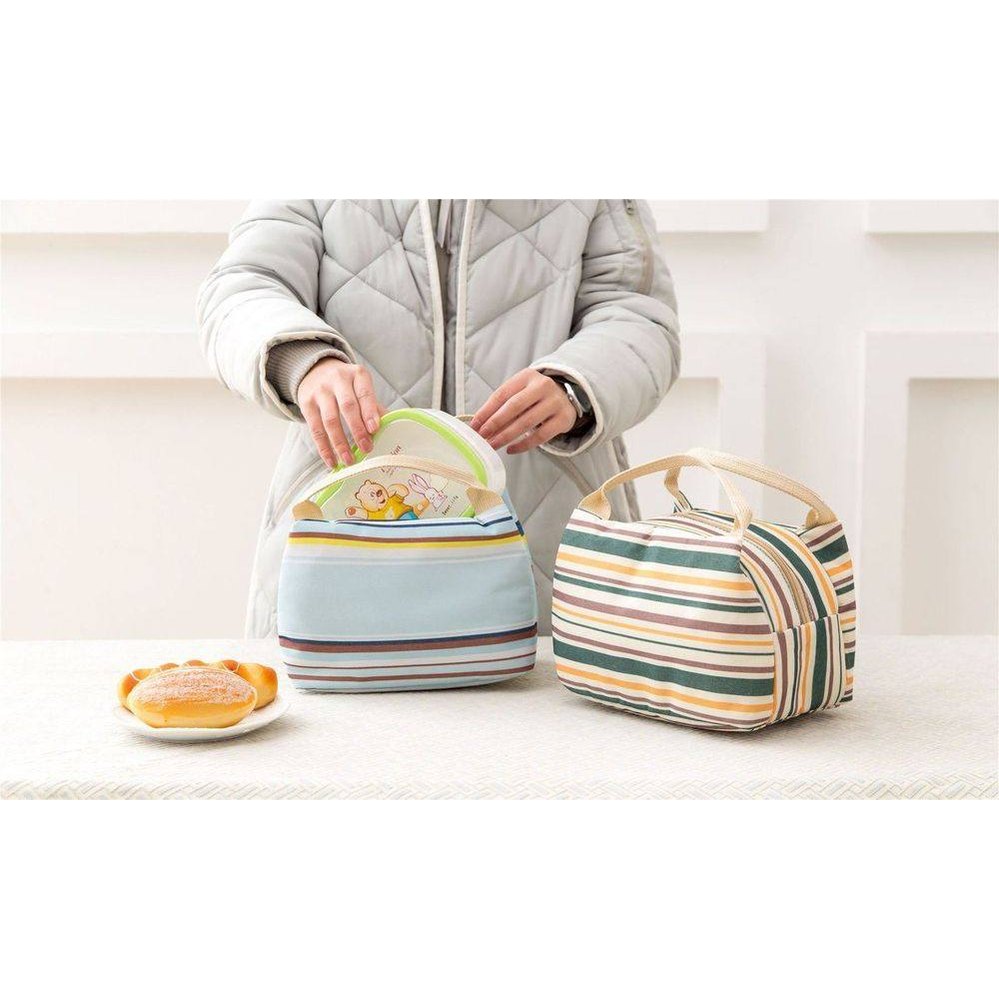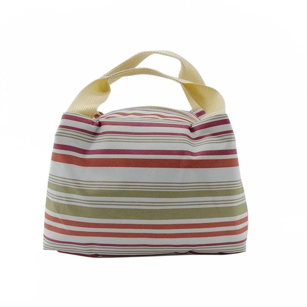 Insulated Striped Canvas Thermal Lunch Bag - in Various Colours