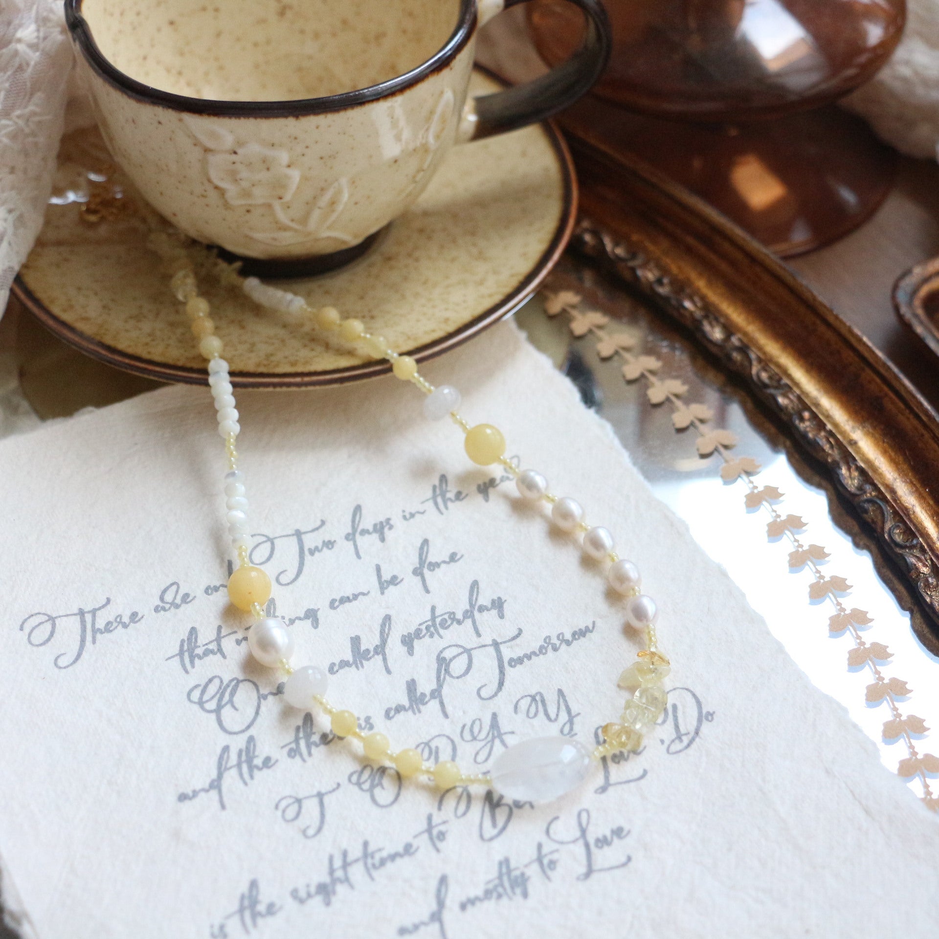 1️⃣ 42+6cm Citrine & Pearl Necklace (Adjustable Boho Elegance):