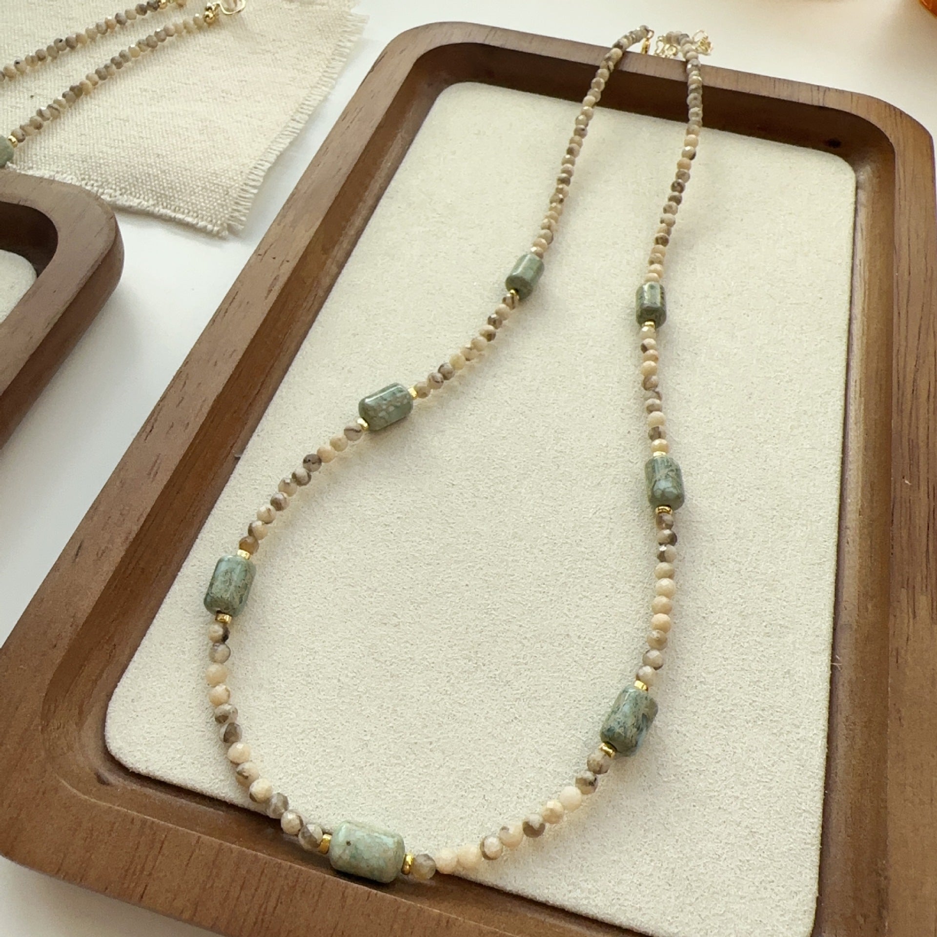 Connaect with nature’s tranquility through Jekira’s handcrafted green gemstone set, where ethically sourced serpentine, peridot, or moss agate beads embody renewal and balance. This versatile collection harmonizes organic textures with minimalist luxury, featuring copper-plated 18K gold accents for enduring elegance.