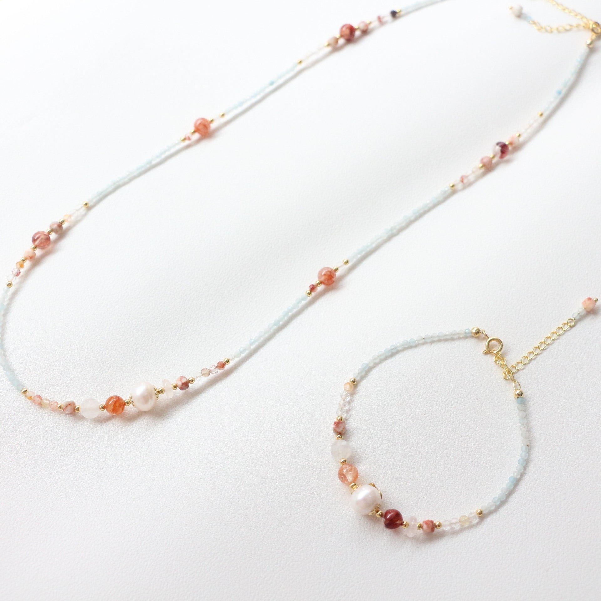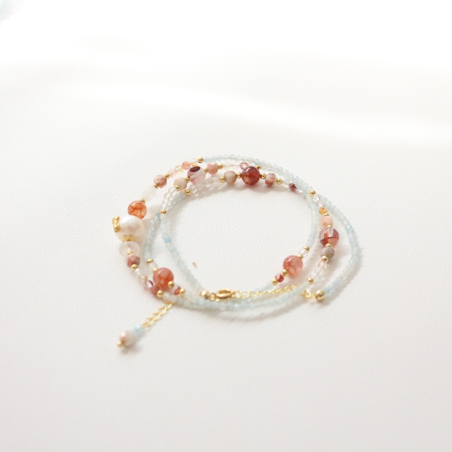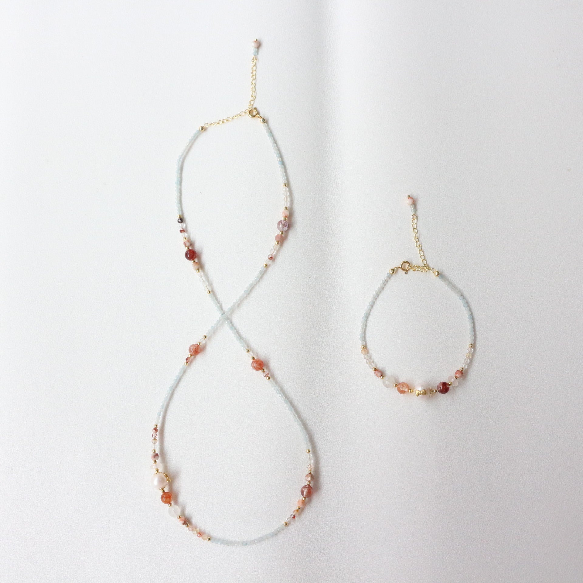 JEKIRA Red Phantom Quartz & Aquamarine Delicate Set