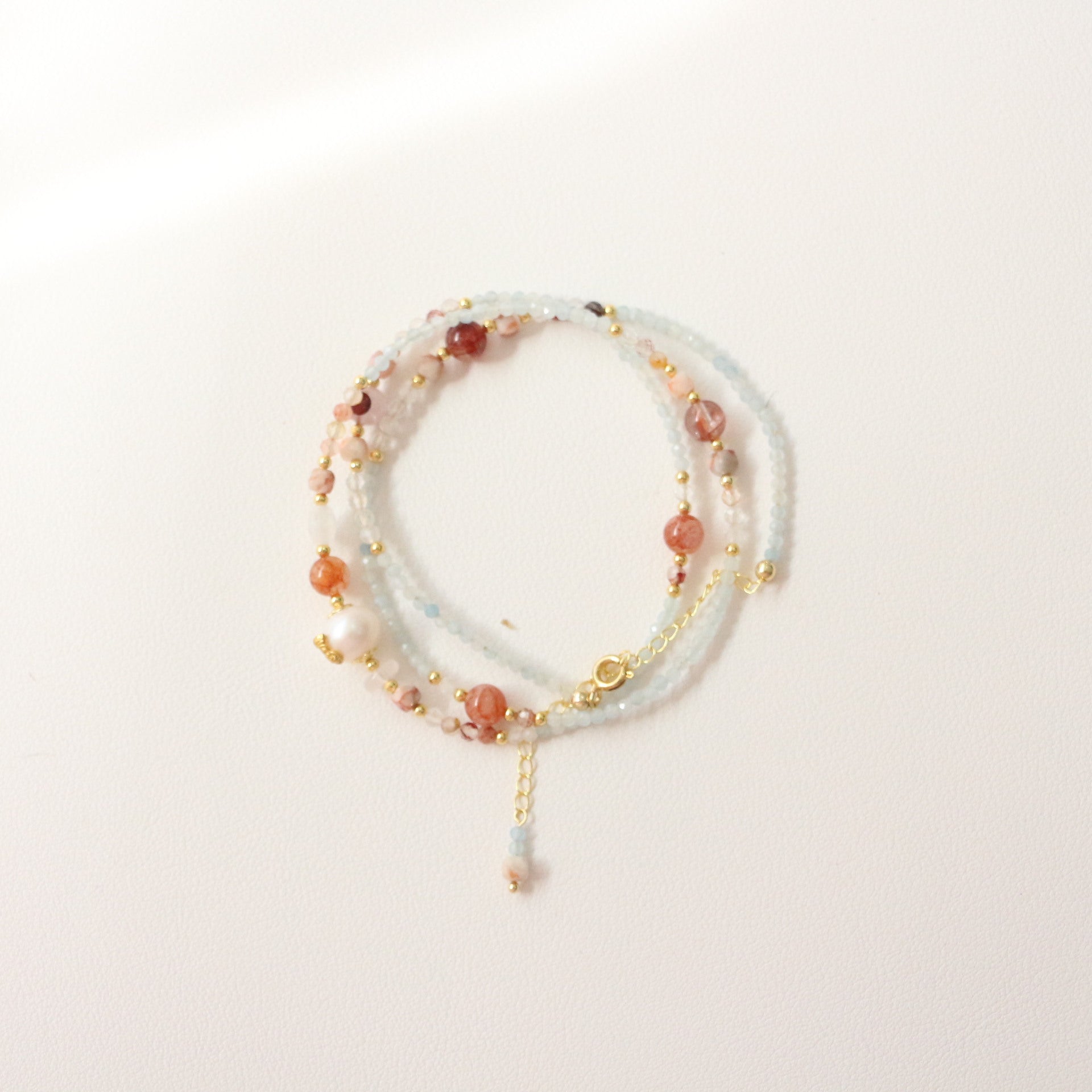 Bottom strand: Aquamarine teardrops + pearl clusters