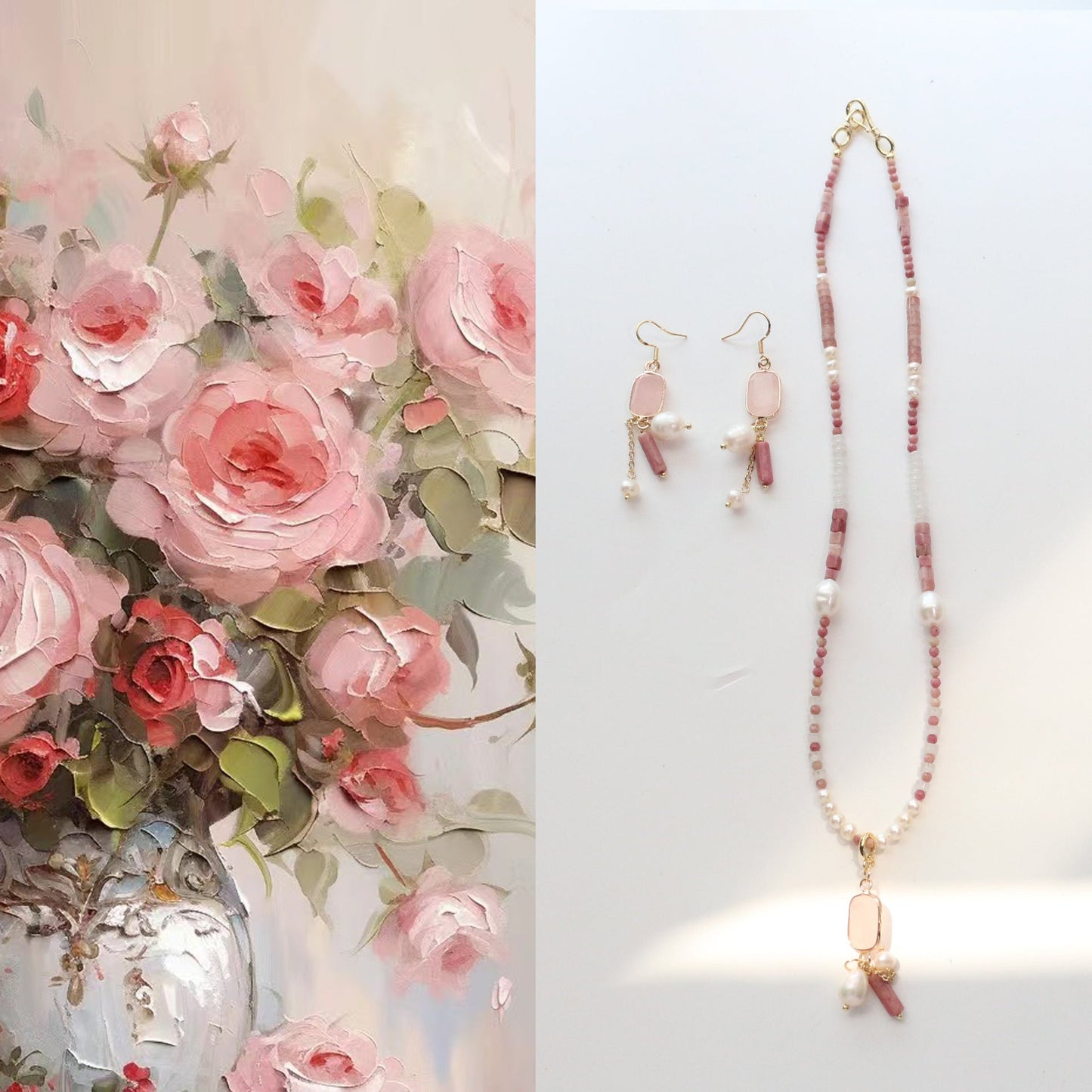 → Bead Sequence: Rose quartz → White jade → Baroque pearl → chakra alignment flow
