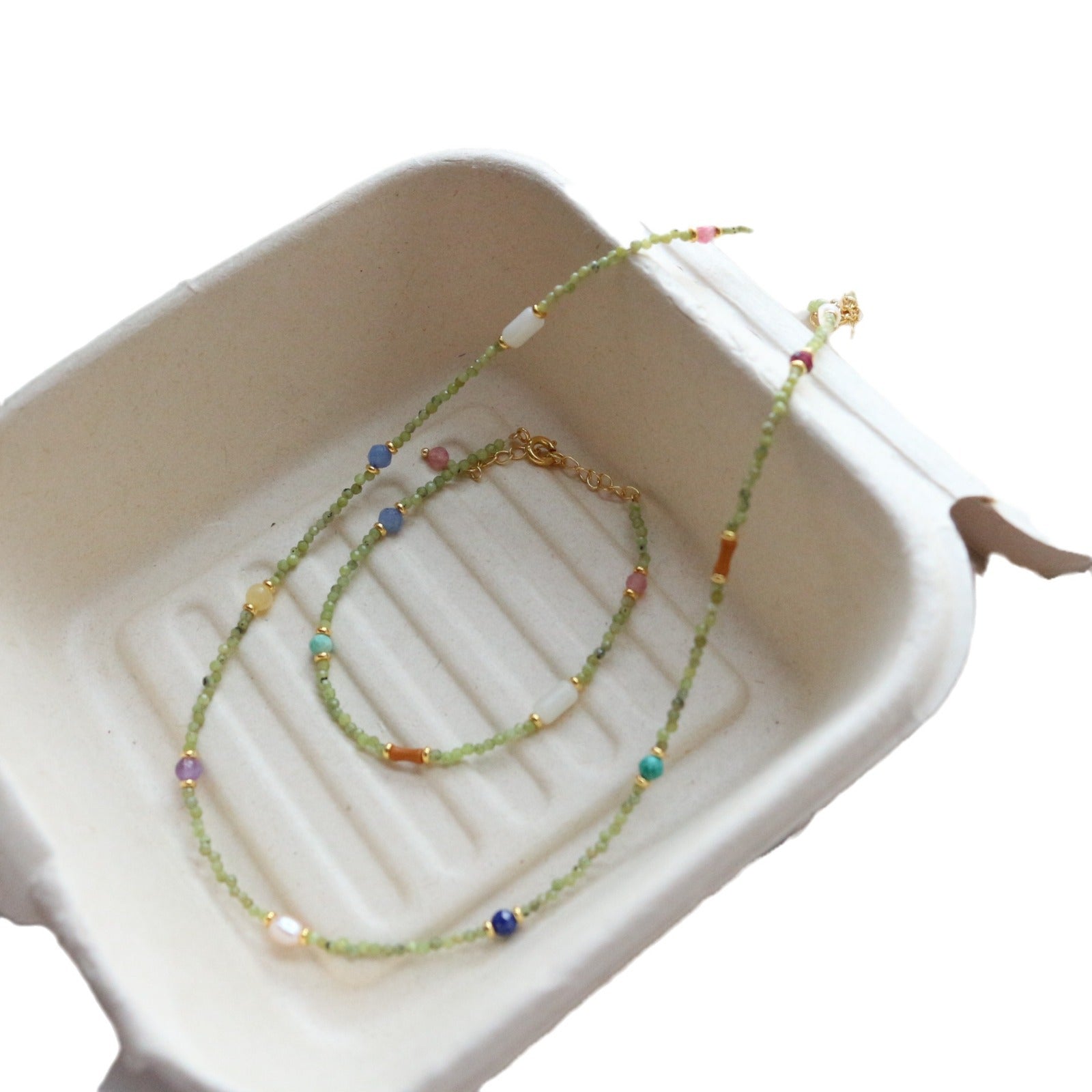 Capture the vibrant energy of summer with this limited-edition jewelry set, where New Chinese aesthetics meet bohemian playfulness. Featuring a 43cm layered necklace (with 6cm extender) and a 15cm adjustable bracelet (5cm extender), this duo celebrates nature’s rainbow through ethically sourced gemstones and luminous freshwater pearls.