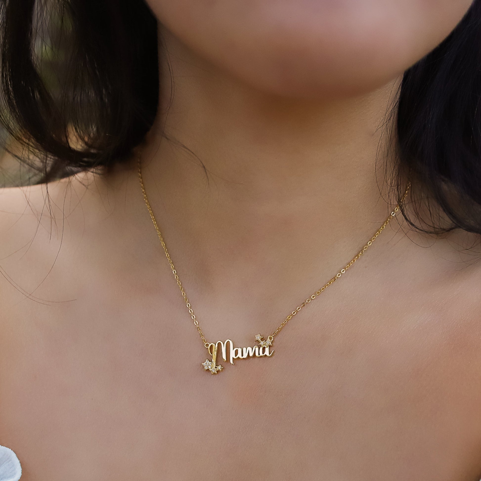 Perfect for all super Mamas, this gorgeous necklace features a handwritten style 'Mama' pendant surrounded by pave encrusted stars, to represent the star that she is.