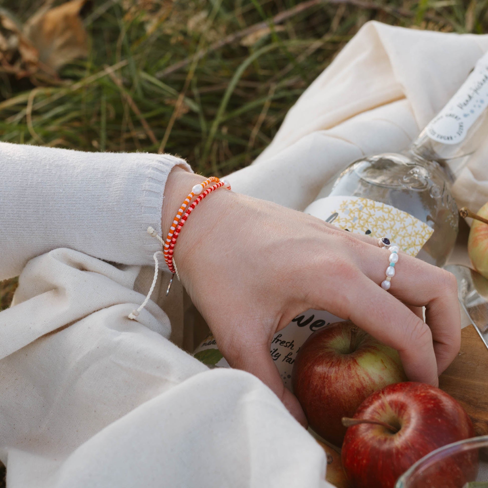 Inspired by Bali’s sunny shores, the Mutiara Dainty Beaded Pearl Bracelet combines the vibrant spirit of the island with a touch of ocean vibes. “Mutiara” means “pearl” in Indonesian, which is why each bracelet is centered around a beautiful freshwater pearl.