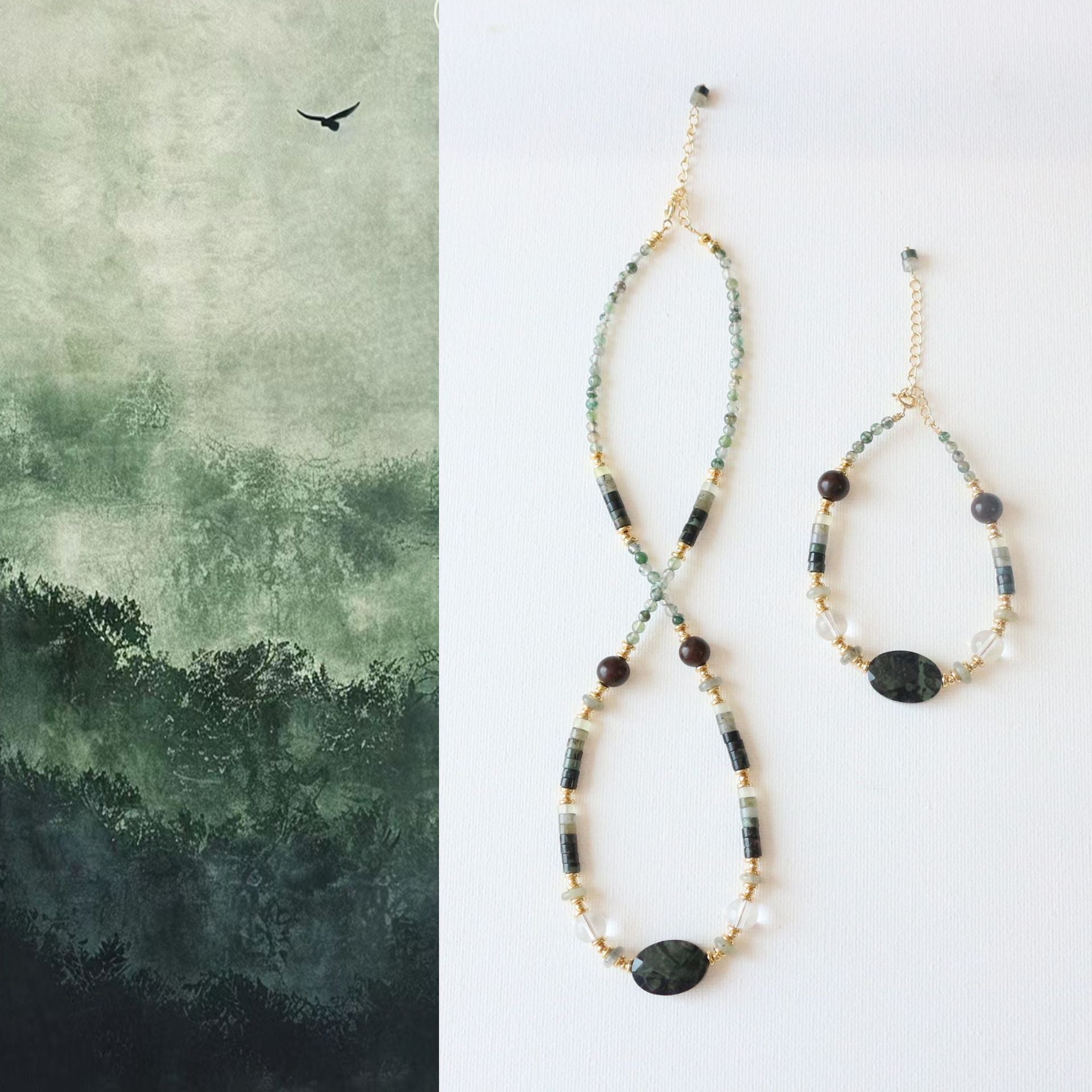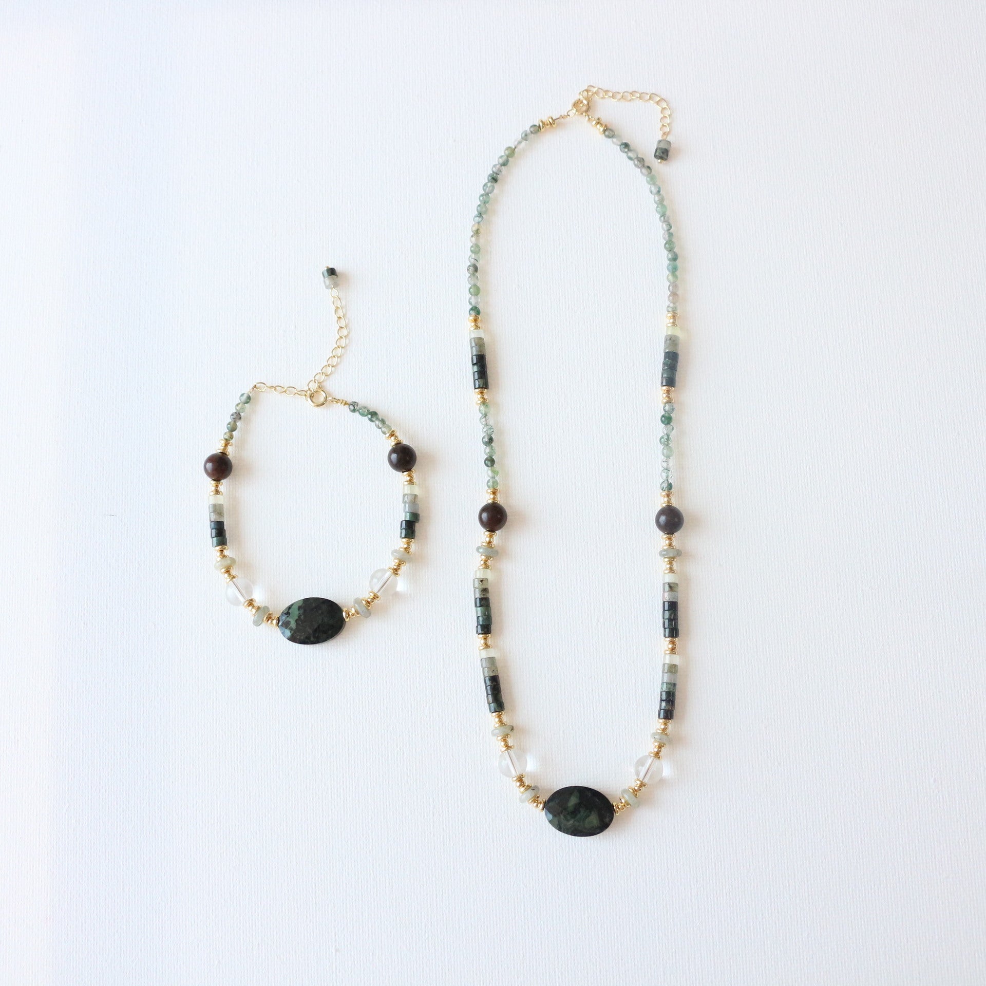 Natural Jasper & Agate Jewelry Set with 18K Gold