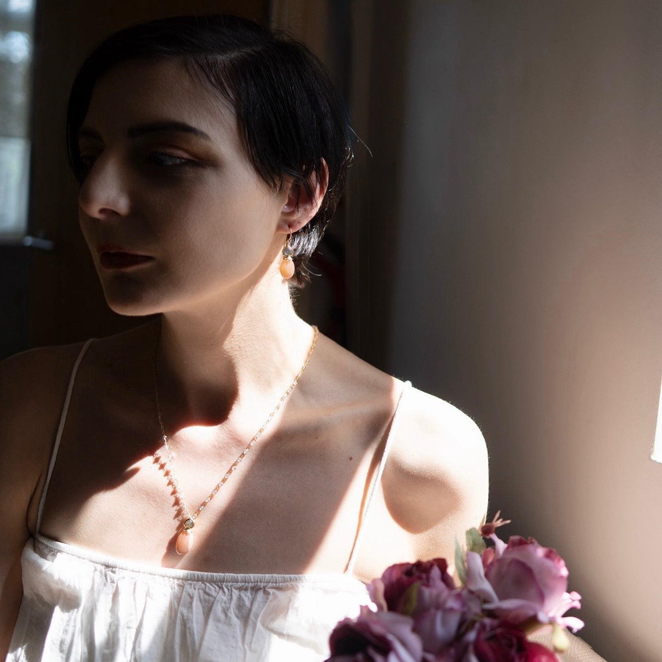 Persephone Double Gemstone Earrings Peach Moonstone & Labradorite