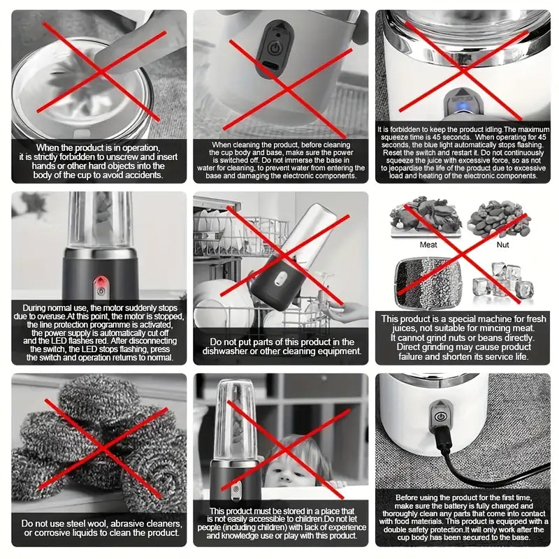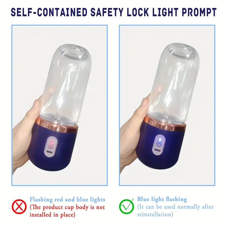 Portable Blender with advanced safety lock and multipurpose design, perfect for smoothies, shakes, and fresh juice anywhere. Equipped with 6 sharp blades made from premium 304 stainless steel for efficient blending. Features a rechargeable lithium battery with USB charging, making it ideal for home, kitchen, office, gym, or travel use. The blending container is crafted from durable plastic, while the body is made of high-quality stainless steel for long-lasting performance. With a compact round shape and <1L capacity, this lightweight personal blender offers convenience, portability, and healthy drinks on the go.