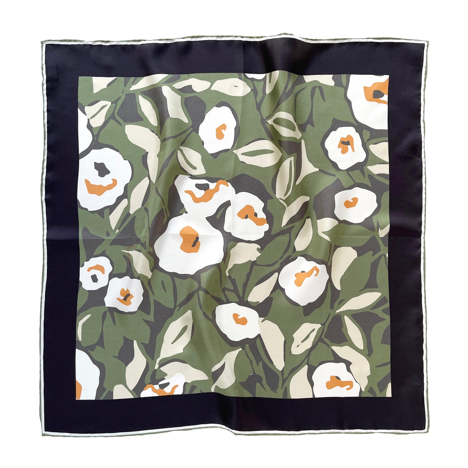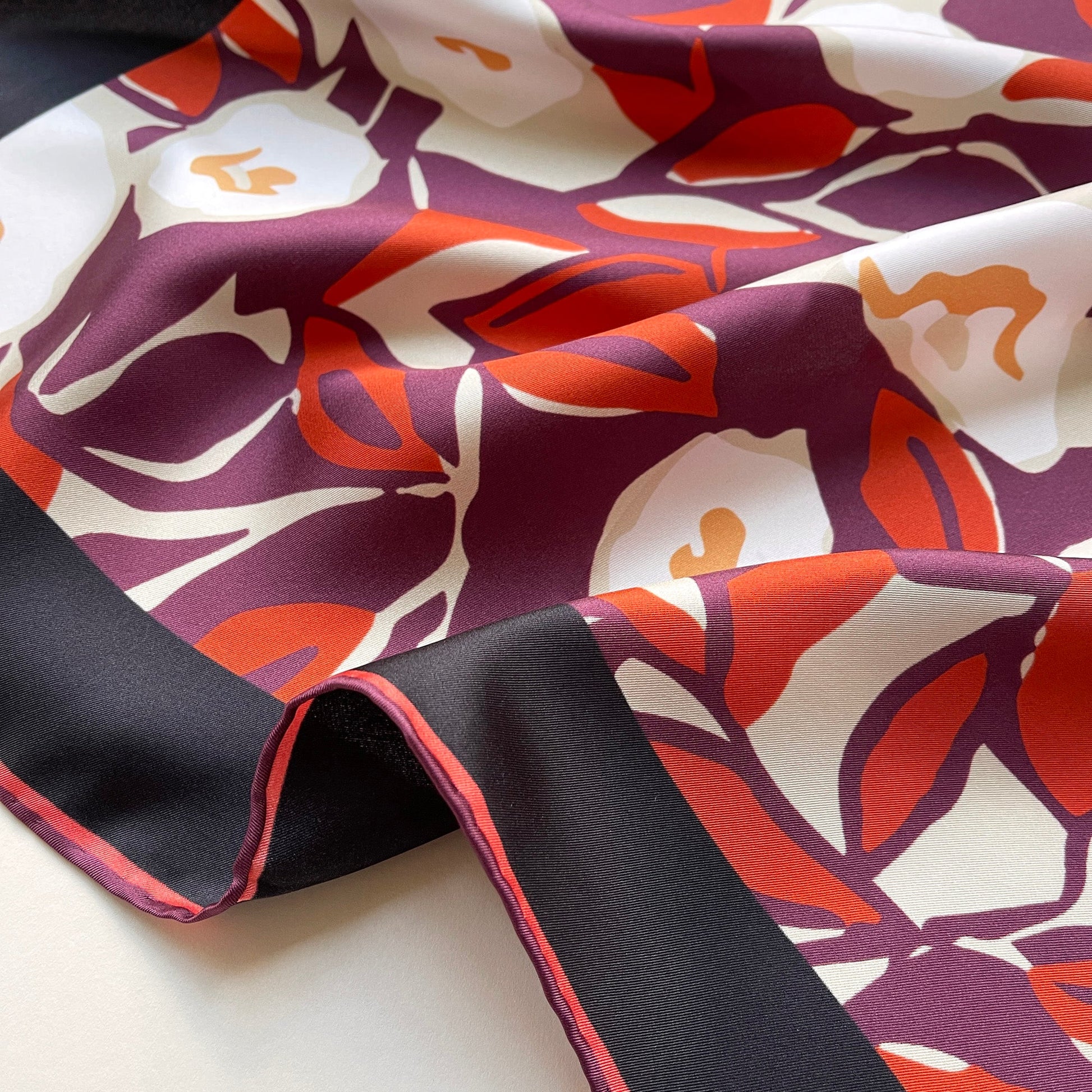 Elevate your style with this exquisite 100% silk bandana, designed to add a touch of sophistication to any outfit and suitable for both women and men. Featuring a vibrant floral print available in burgundy purple and forest green, this versatile accessory can be worn as a neckerchief, headband, or tied elegantly to a handbag.