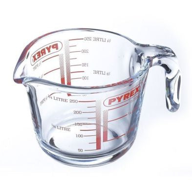 Perfectly formed and now small! Pyrex's iconic measuring jug is now available in a 0.25l size. Guaranteed for 10 years, oven, microwave, fridge, freezer and dishwasher safe. Easy to clean and scratch resistant. Explore more of our range, we have a huge variety of products in stock. Have a query or can't find something you're looking for? We receive new deliveries every week, so if the item you wish to purchase is currently out of stock, please contact our Customer Services Team and we may be able to reserve the items you require.