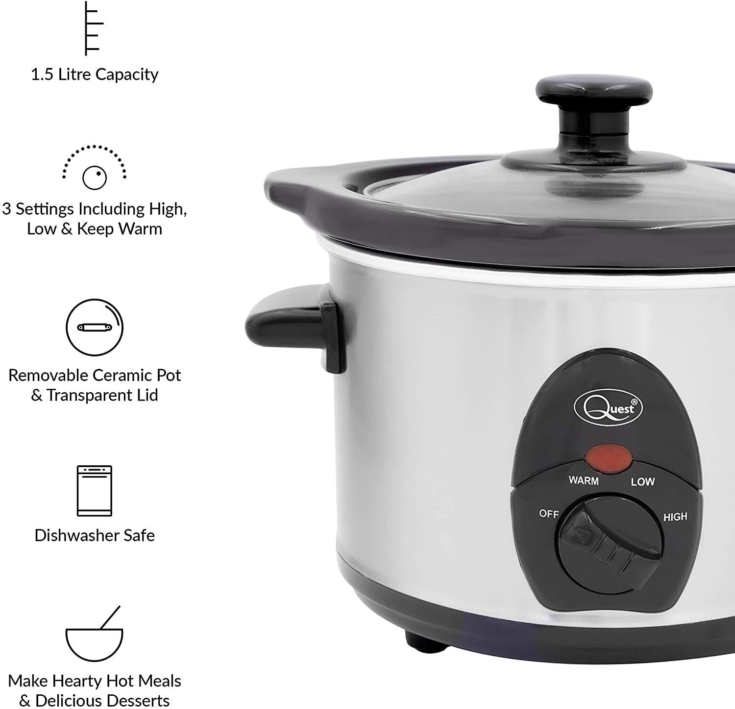 Quest 1.5 Litre Compact Slow Cooker Stainless Steel- 35260